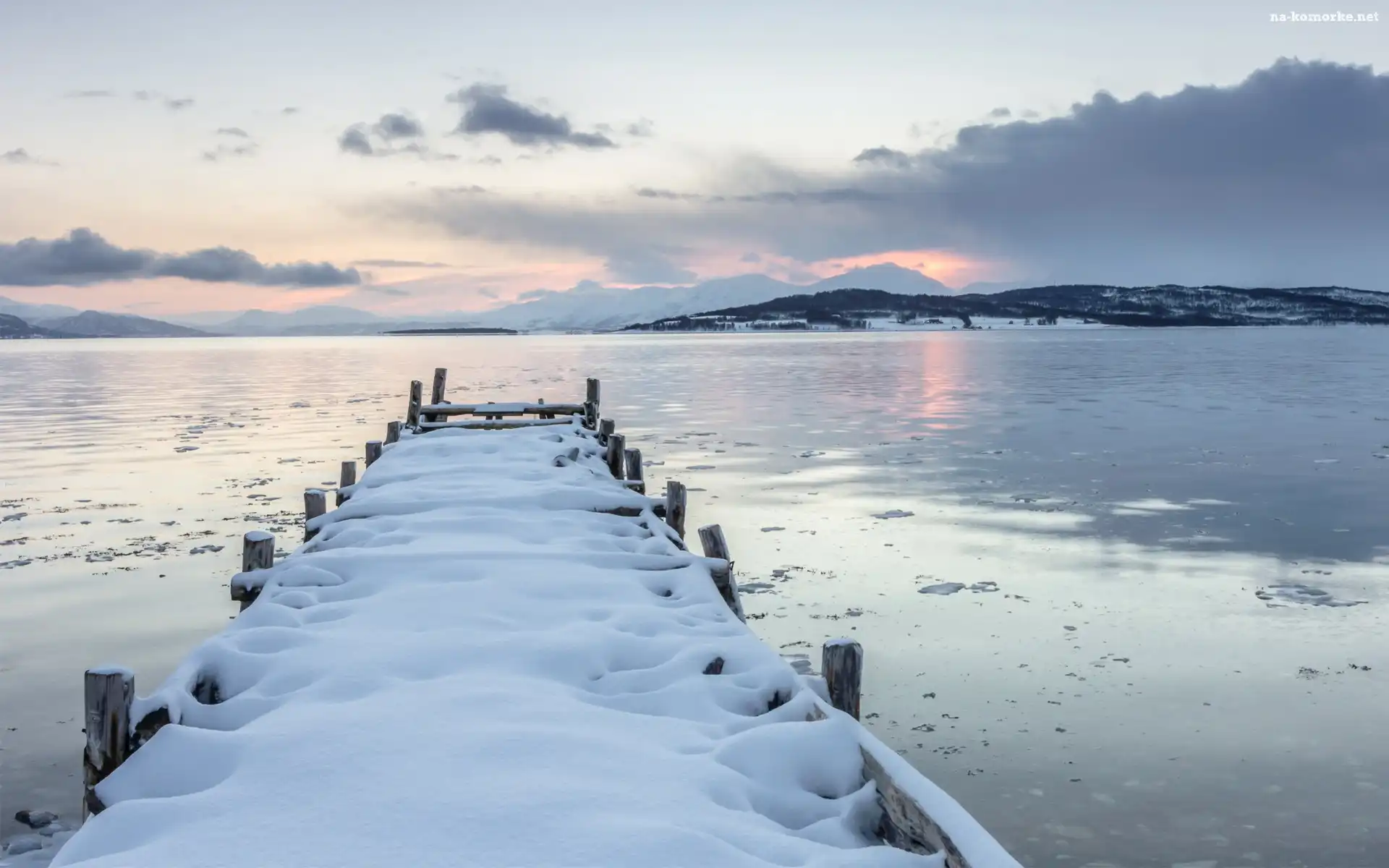 Zima, Góry, Jezioro, Molo, Śnieg na Komórkę