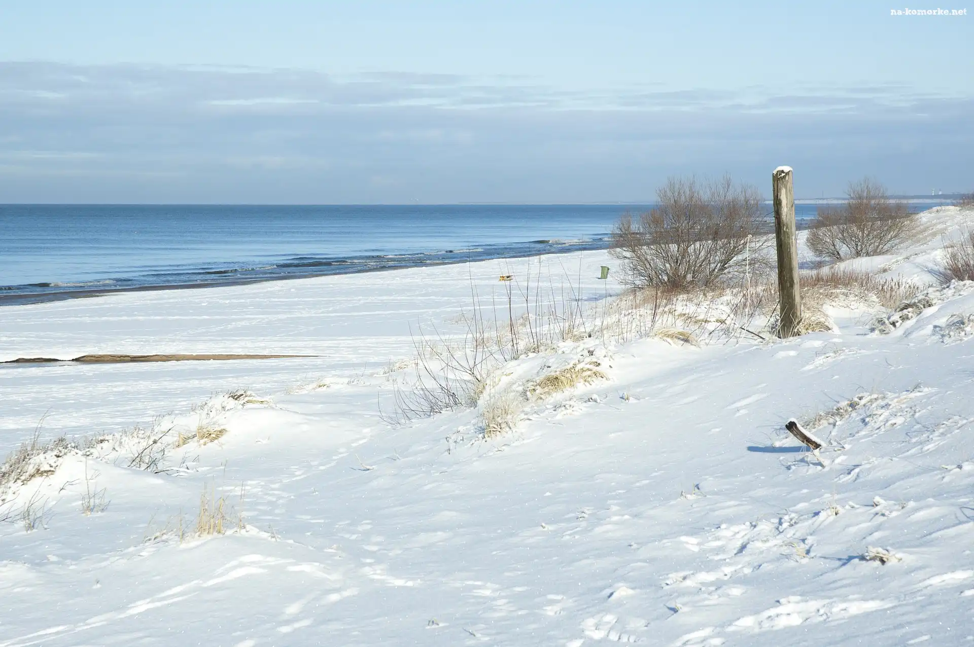 Zima, Śnieg, Morze, Plaża na Komórkę