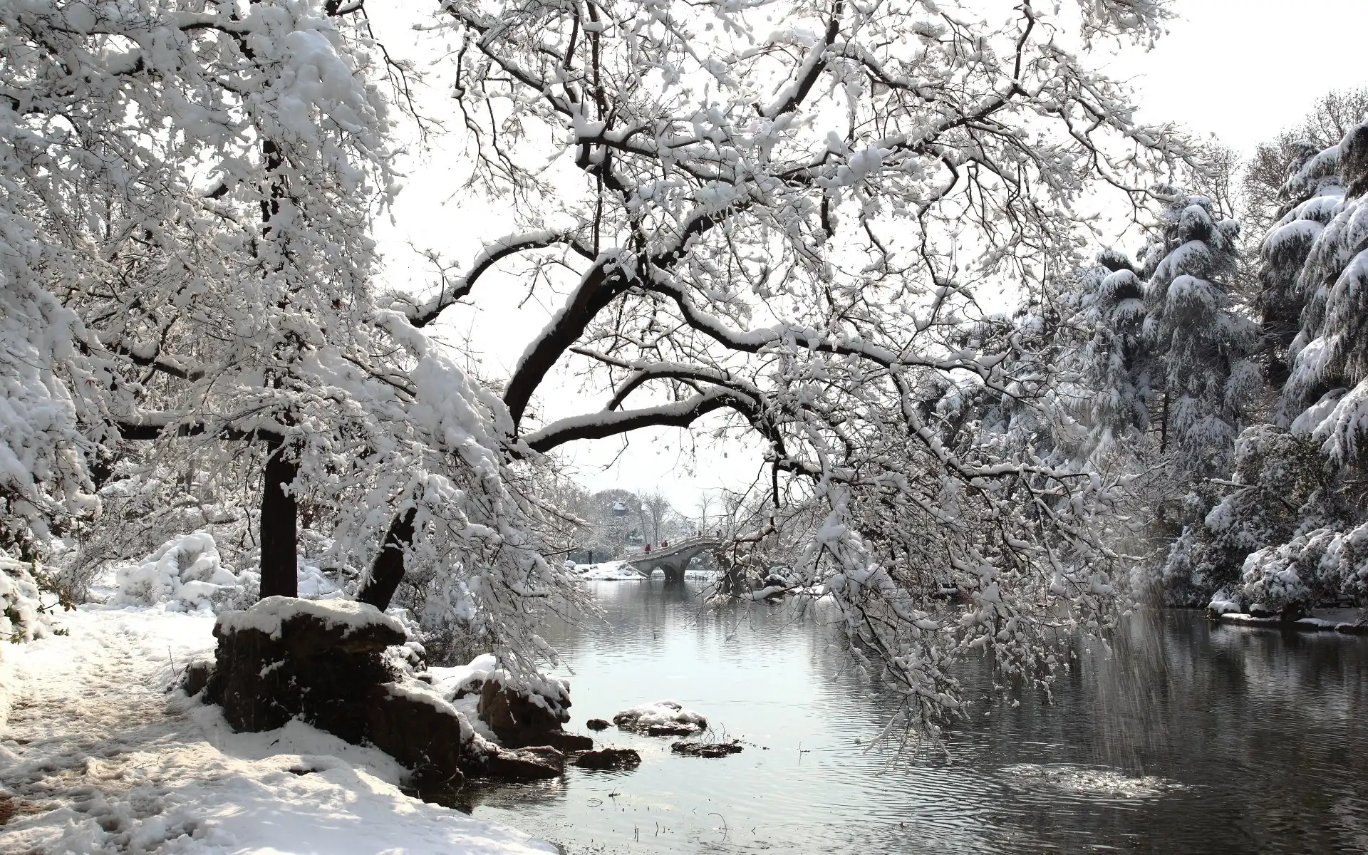 Zima, Rzeka, Park, Most, Ścieżka na Komórkę