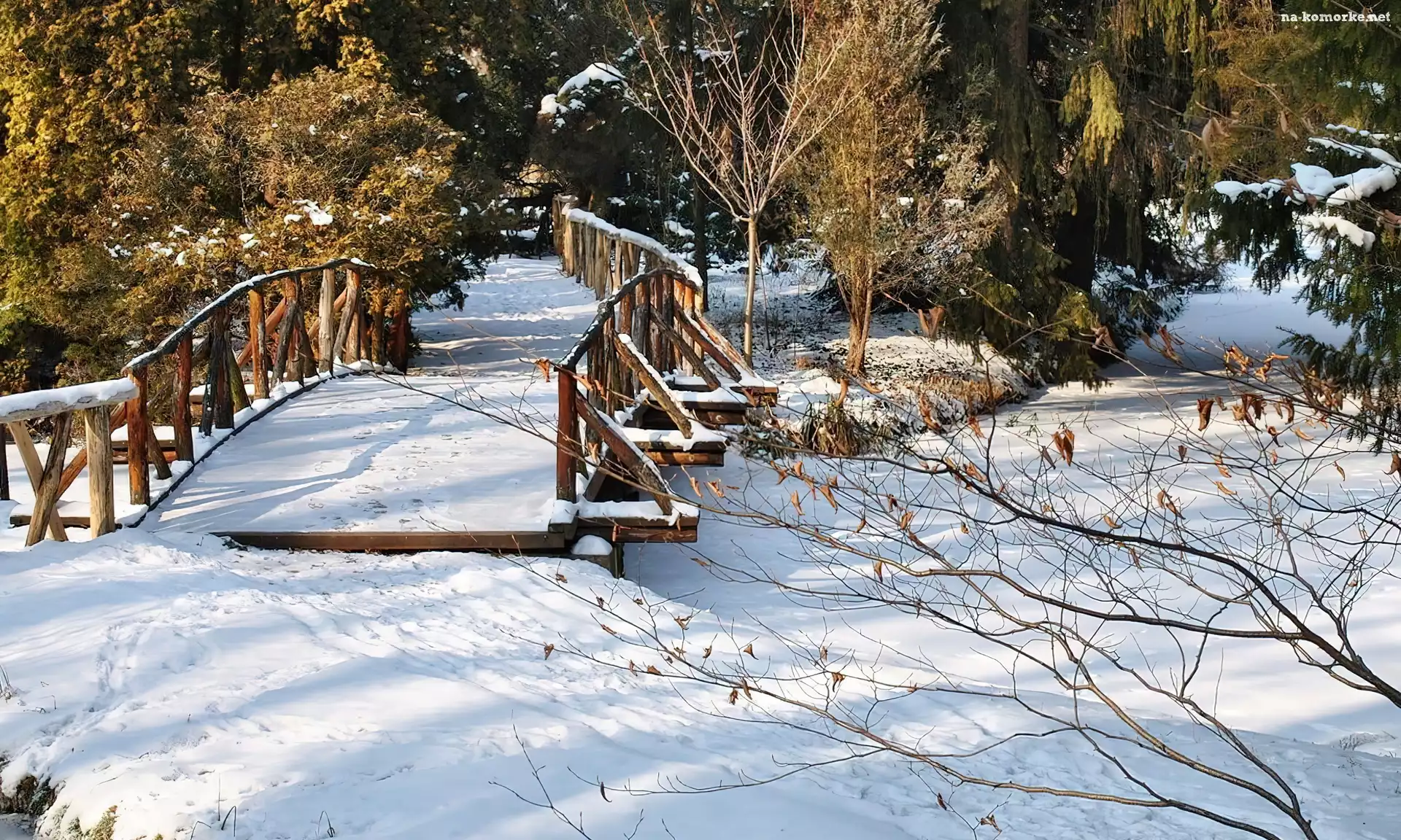 Zima, Rzeka, Mostek, Zamarznięta na Komórkę