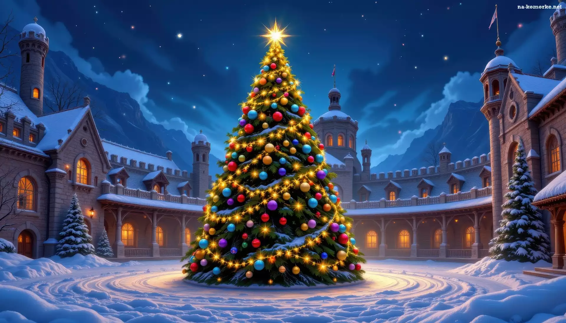 Domy, Boże Narodzenie, Zima, Wieża, Choinka, Udekorowana na Komórkę