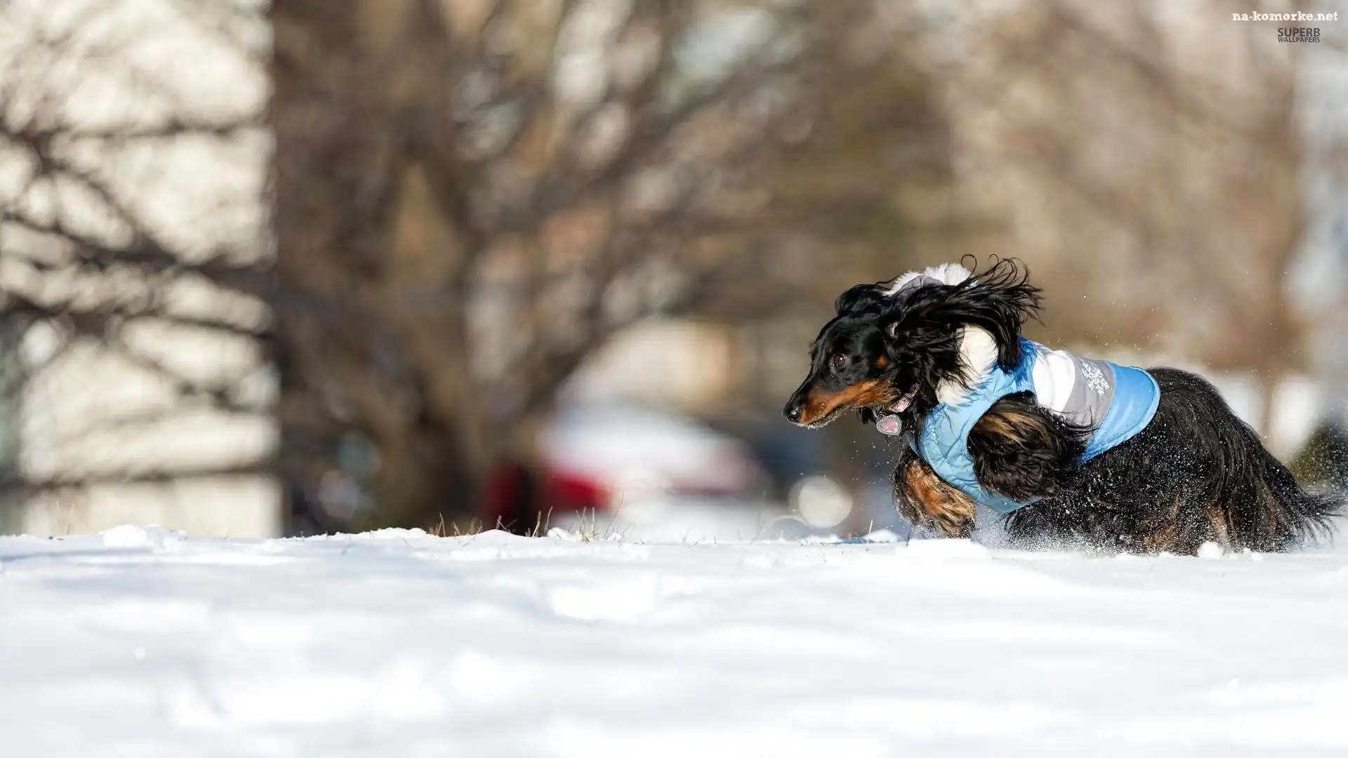 Zima, Długowsłosy, Śnieg, Jamnik na Komórkę
