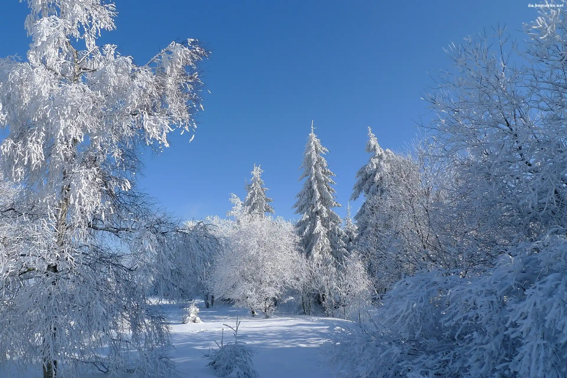 Zima, Drzewa, Śnieg, Oszronione na Komórkę