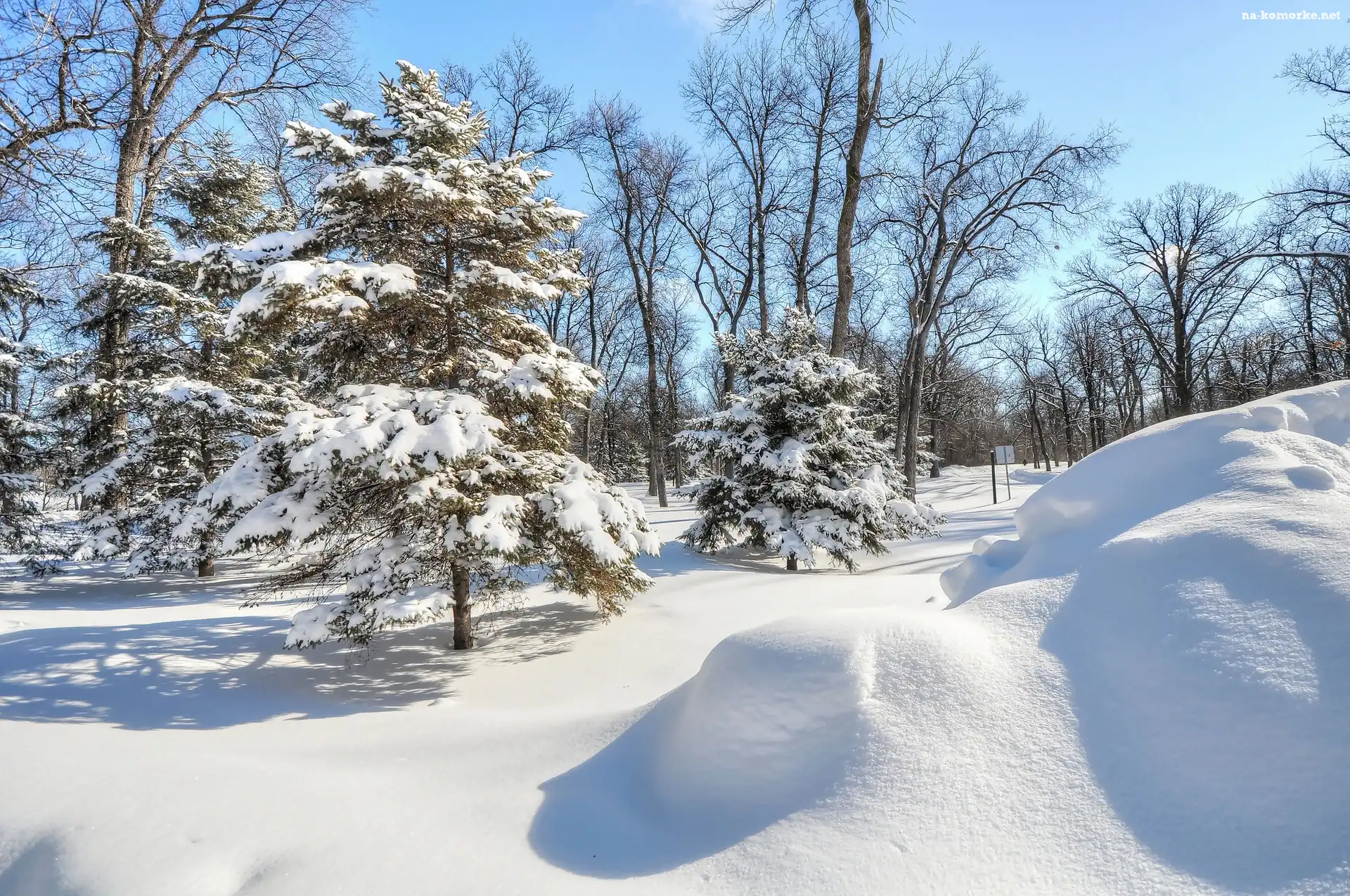 Zima, Drzewa, Śnieg, Park na Komórkę