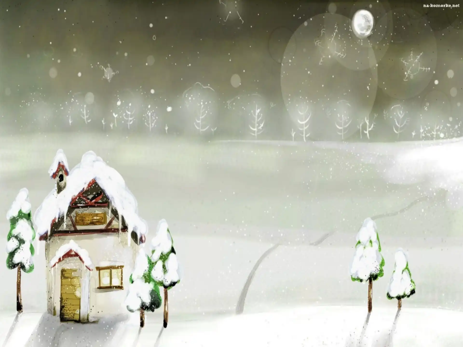 Zima, Noc, Śnieg, Dom na Komórkę