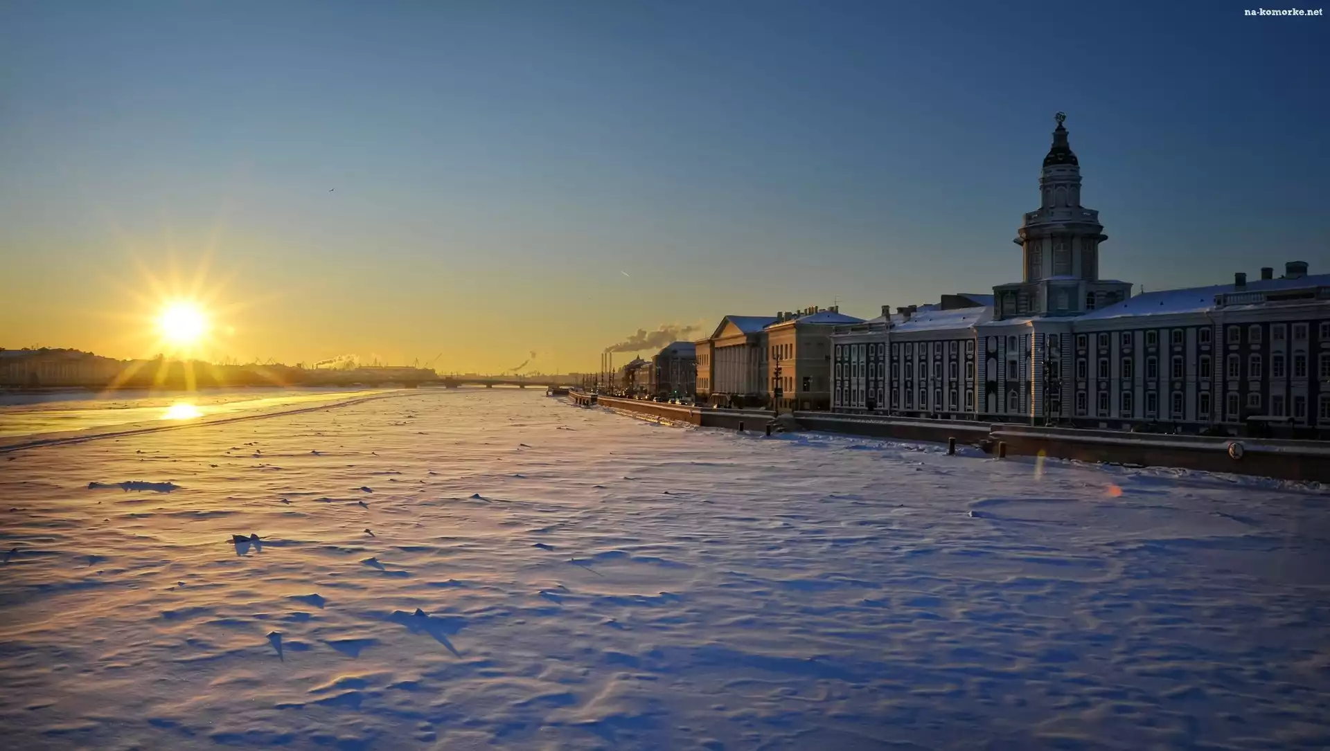 Zima, Słoneczko, Śnieg, Miasto na Komórkę