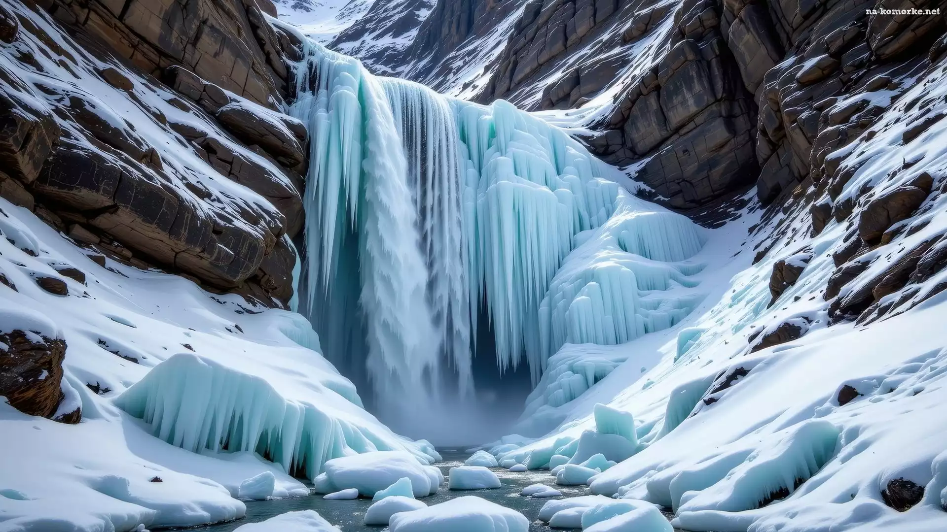 Rzeka, Skały, Sople, Zima, Wodospad, Oblodzony na Komórkę