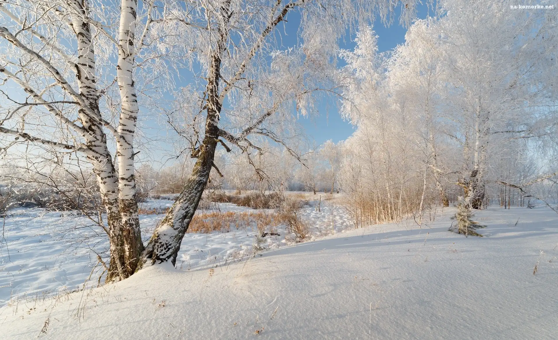 Zima, Brzozy, Ośnieżone, Drzewa na Komórkę