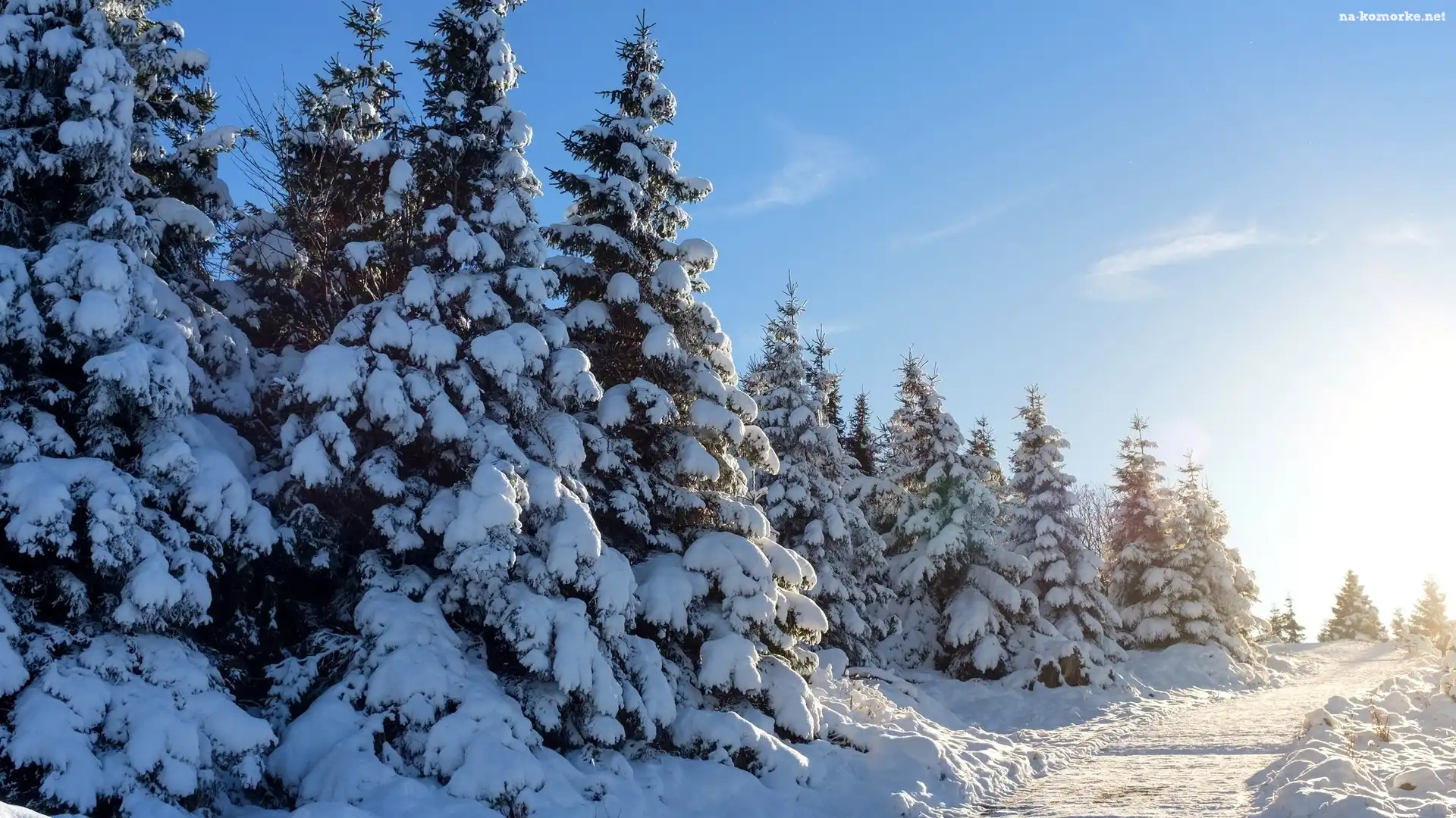 Zima, Droga, Ośnieżone, Świerki na Komórkę