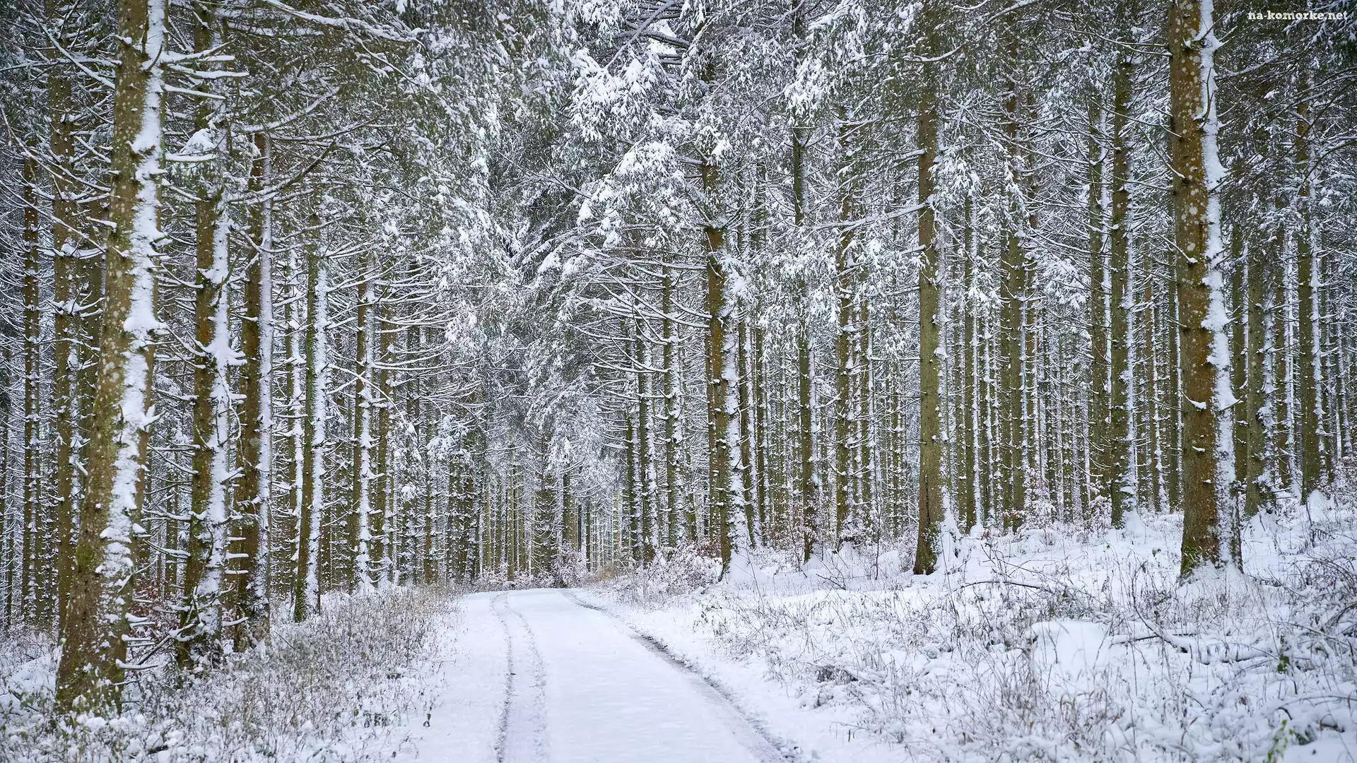 Las, Zima, Ośnieżone, Droga, Drzewa na Komórkę