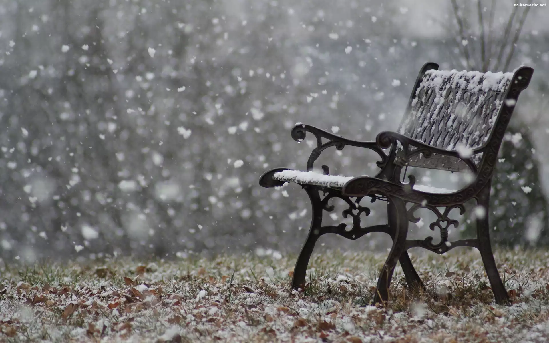 Zima, Ławeczka, Padający, Śnieg na Komórkę