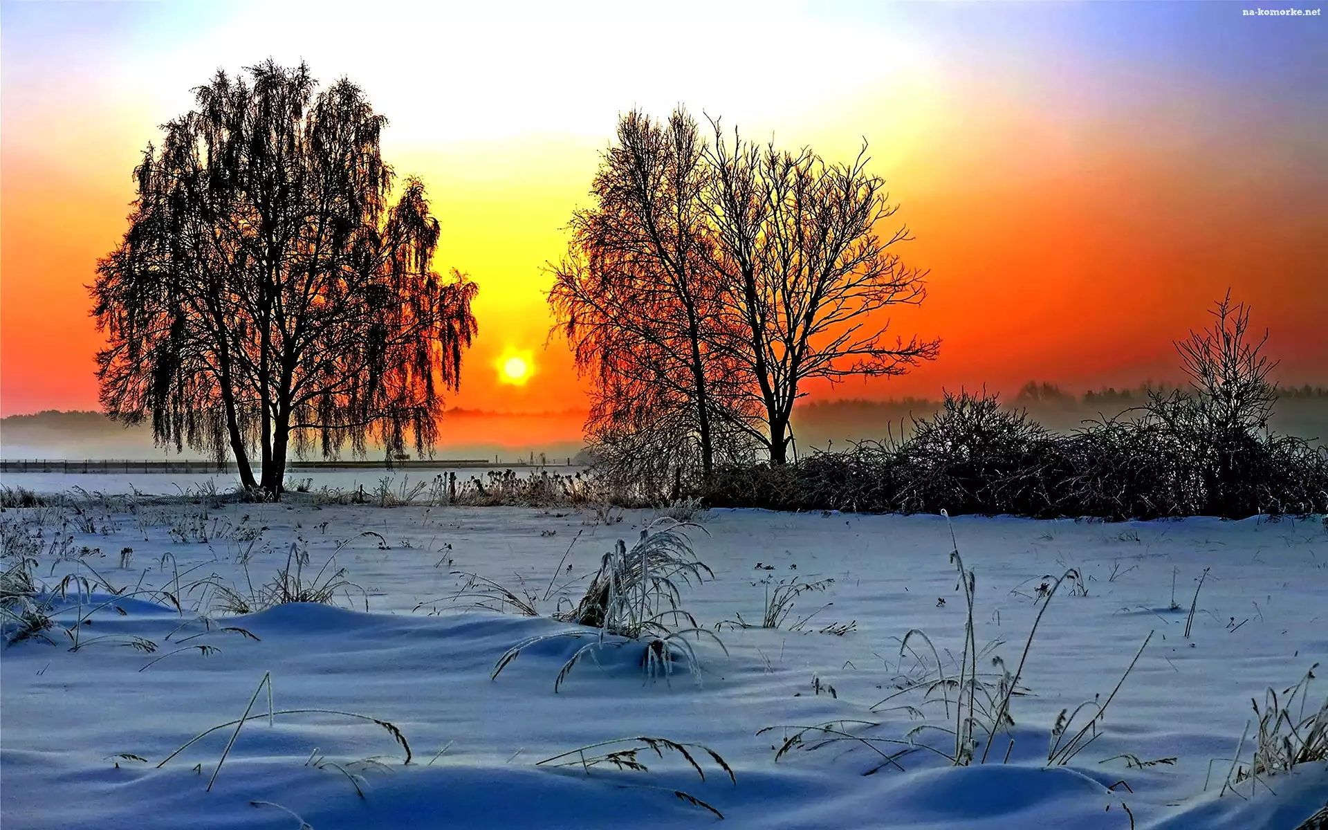 Zima, Łąki, Drzewa, Promienie, Słońca na Komórkę