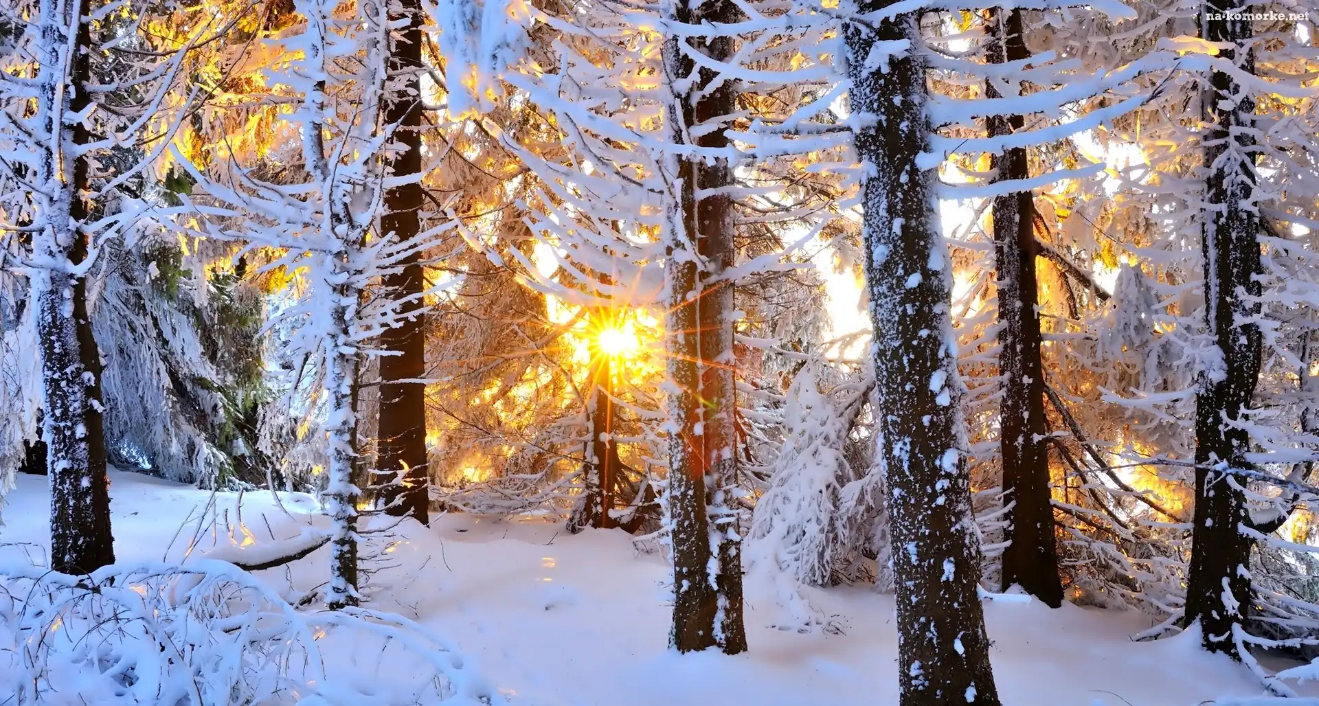 Zima, Las, Promienie słońca na Komórkę