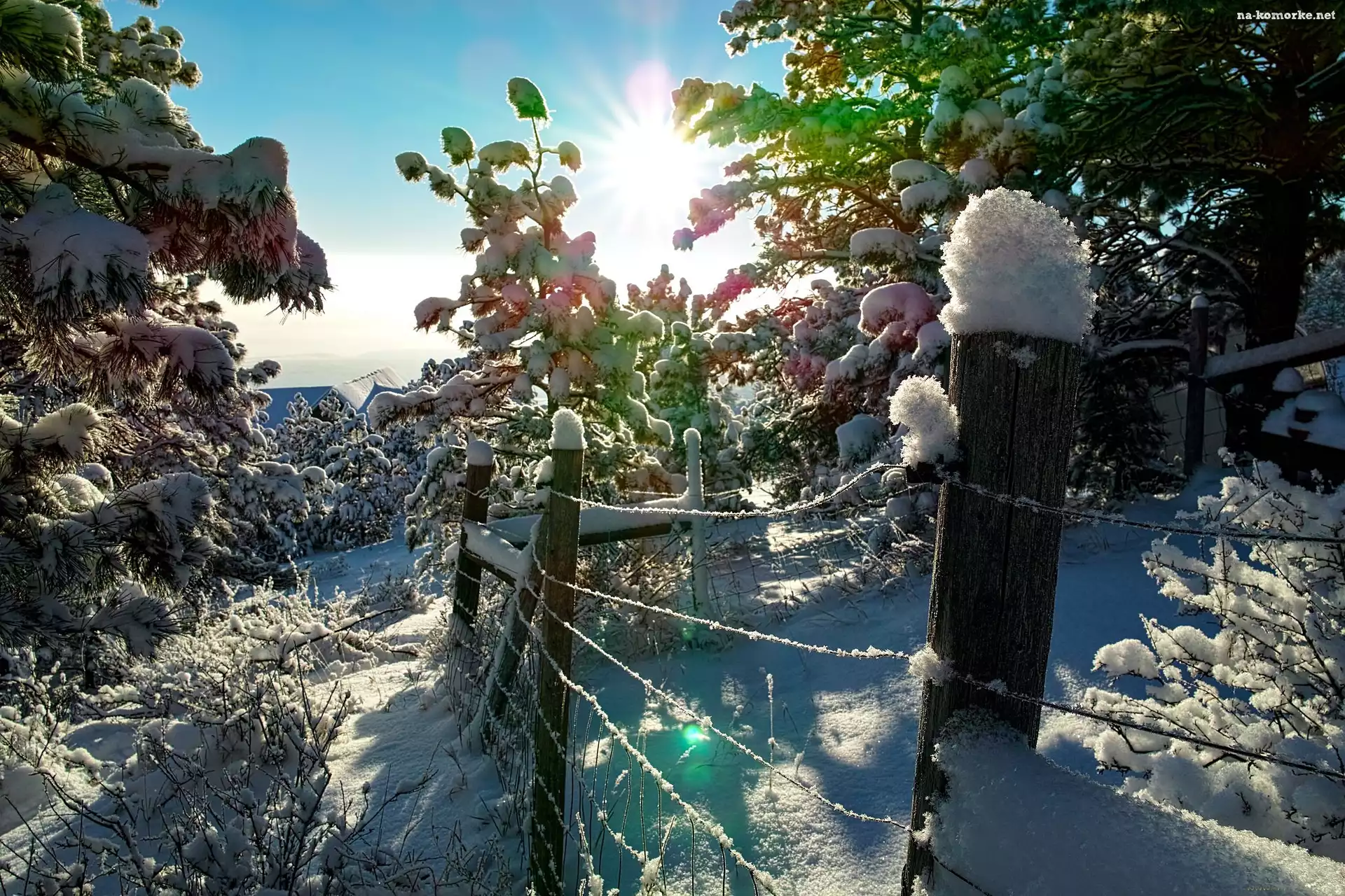 Zima, Ogrodzenie, Promienie Słońca na Komórkę