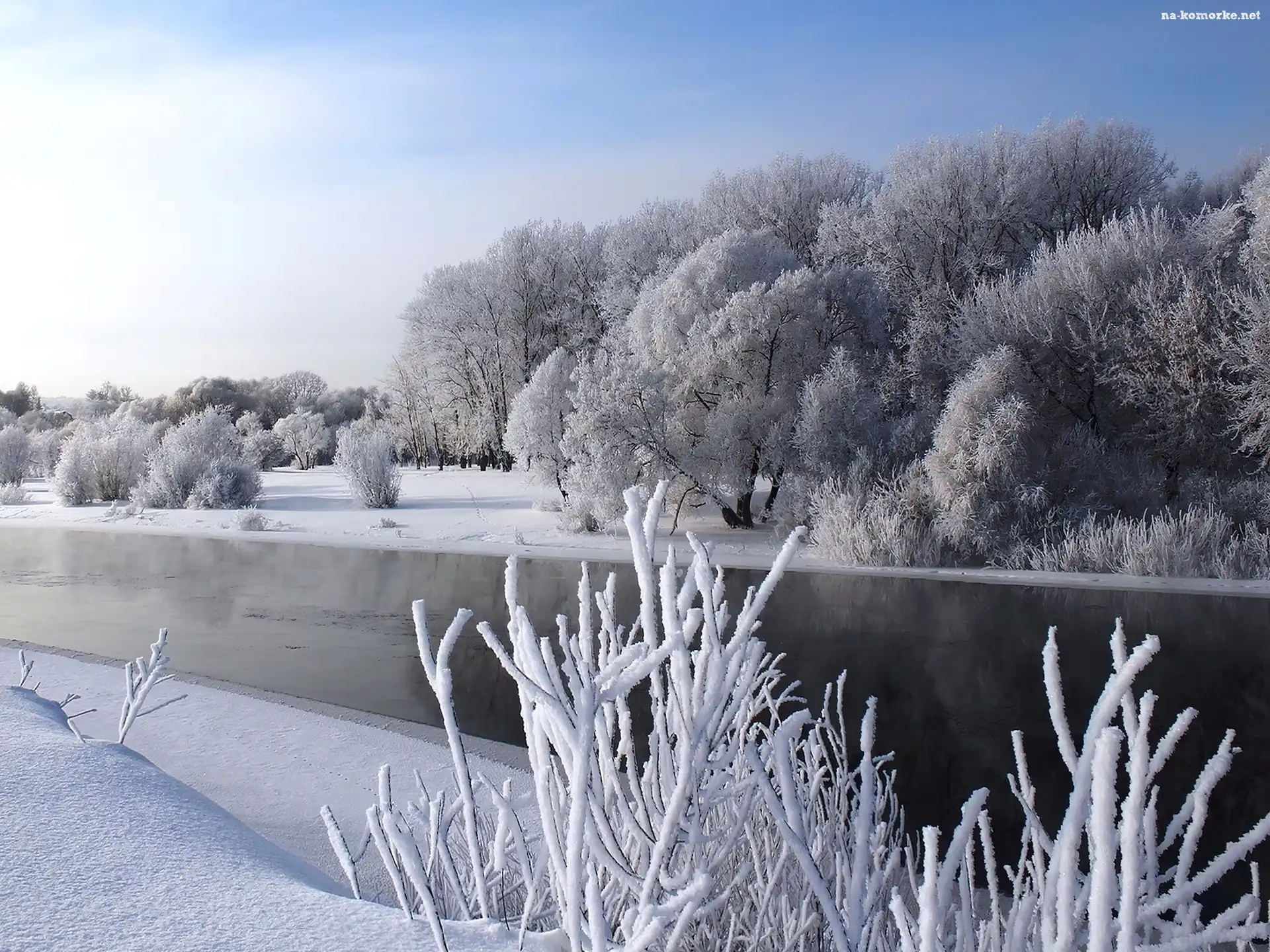 Zima, Krzew, Rzeka, Oszroniony na Komórkę