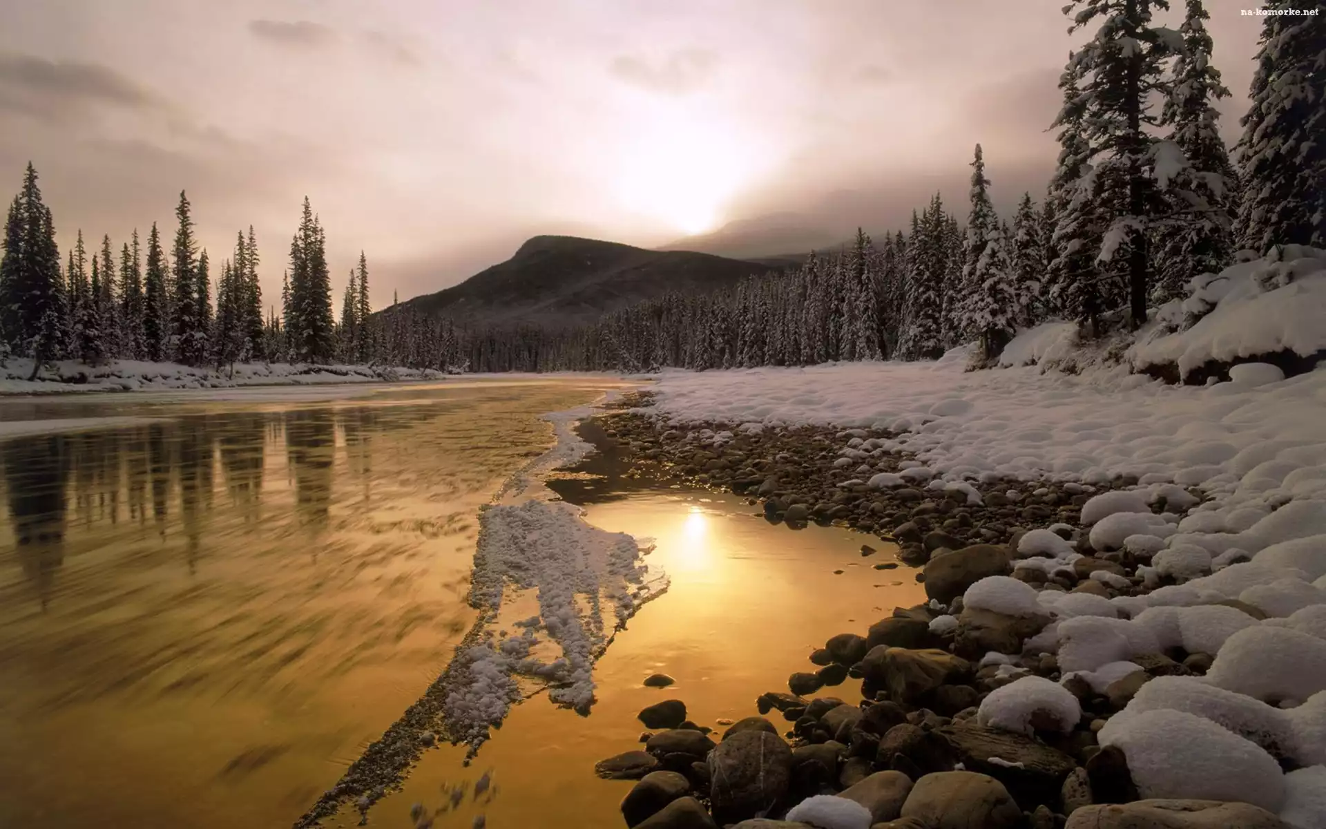 Zima, Las, Rzeka, Kamienie na Komórkę