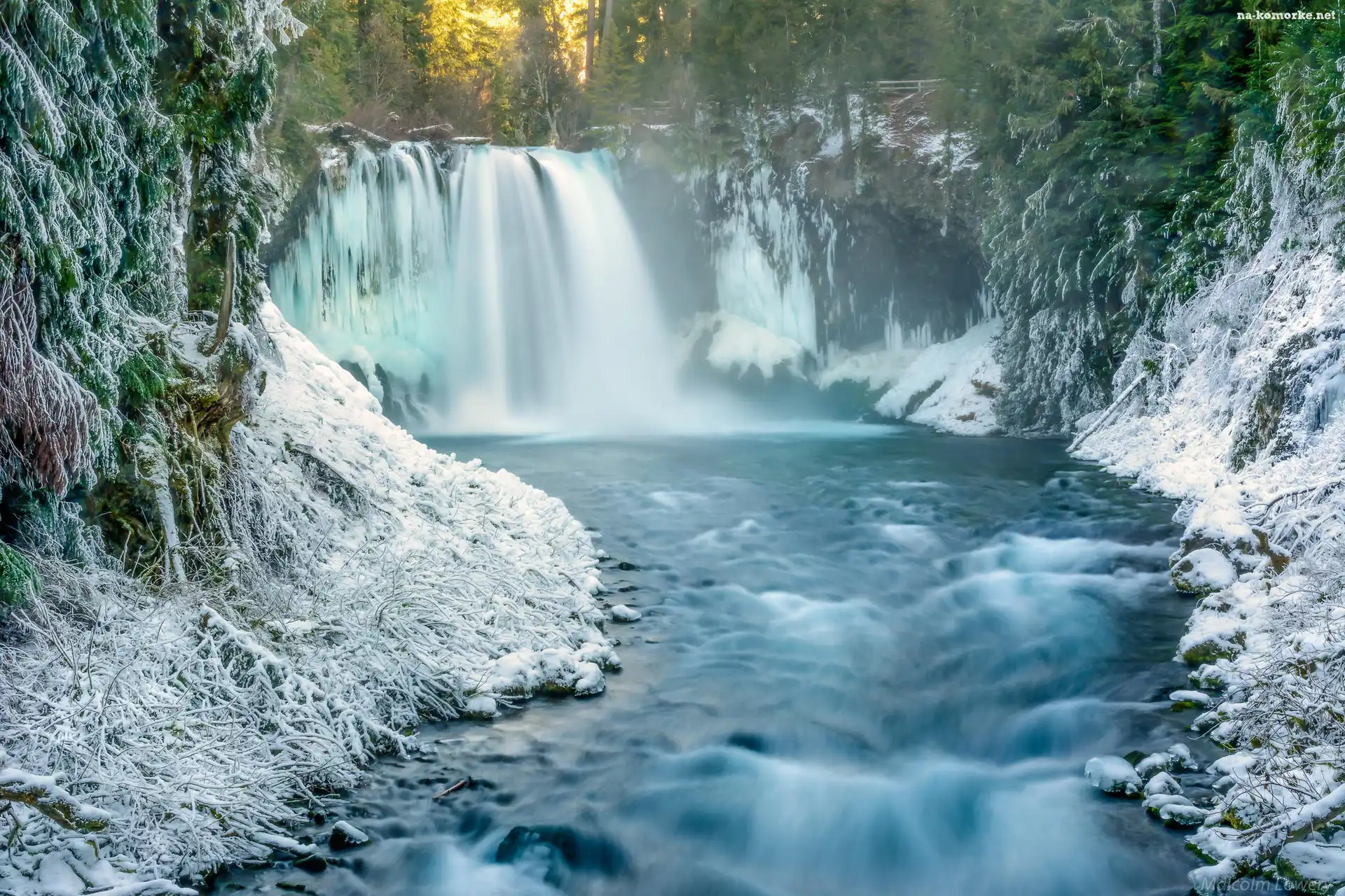 Zima, Opary, Rzeka, Wodospad na Komórkę