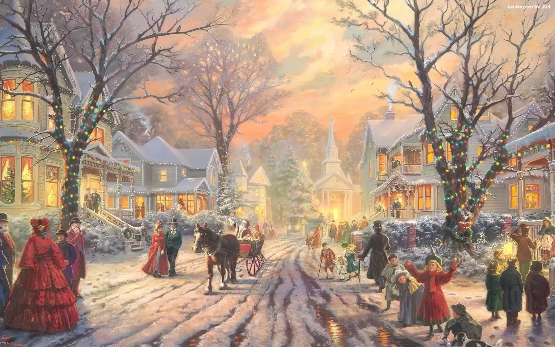 Zima, Ludzie, Ulica, Narodzenie, Sanie, Boże na Komórkę
