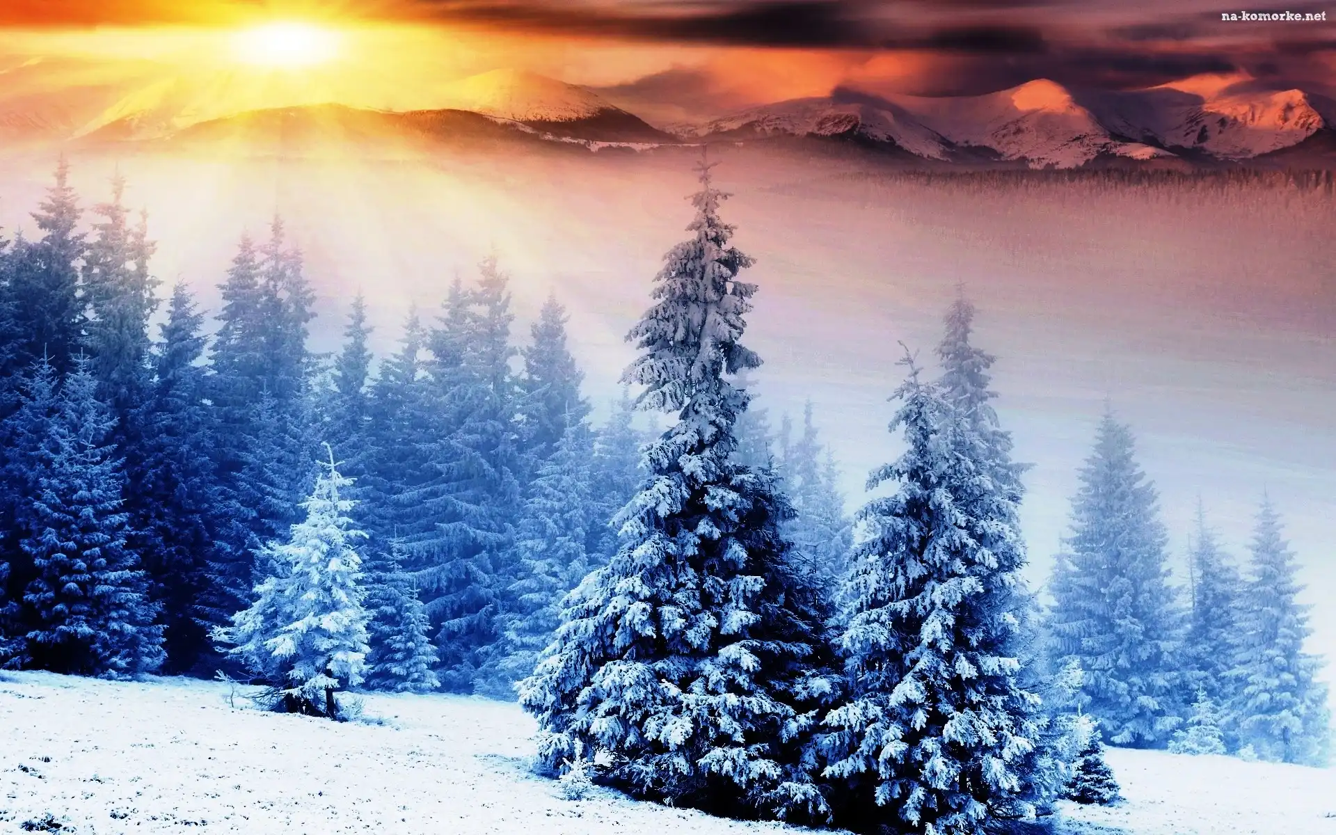 Zima, Góry, Promienie, Słońca, Świerki na Komórkę