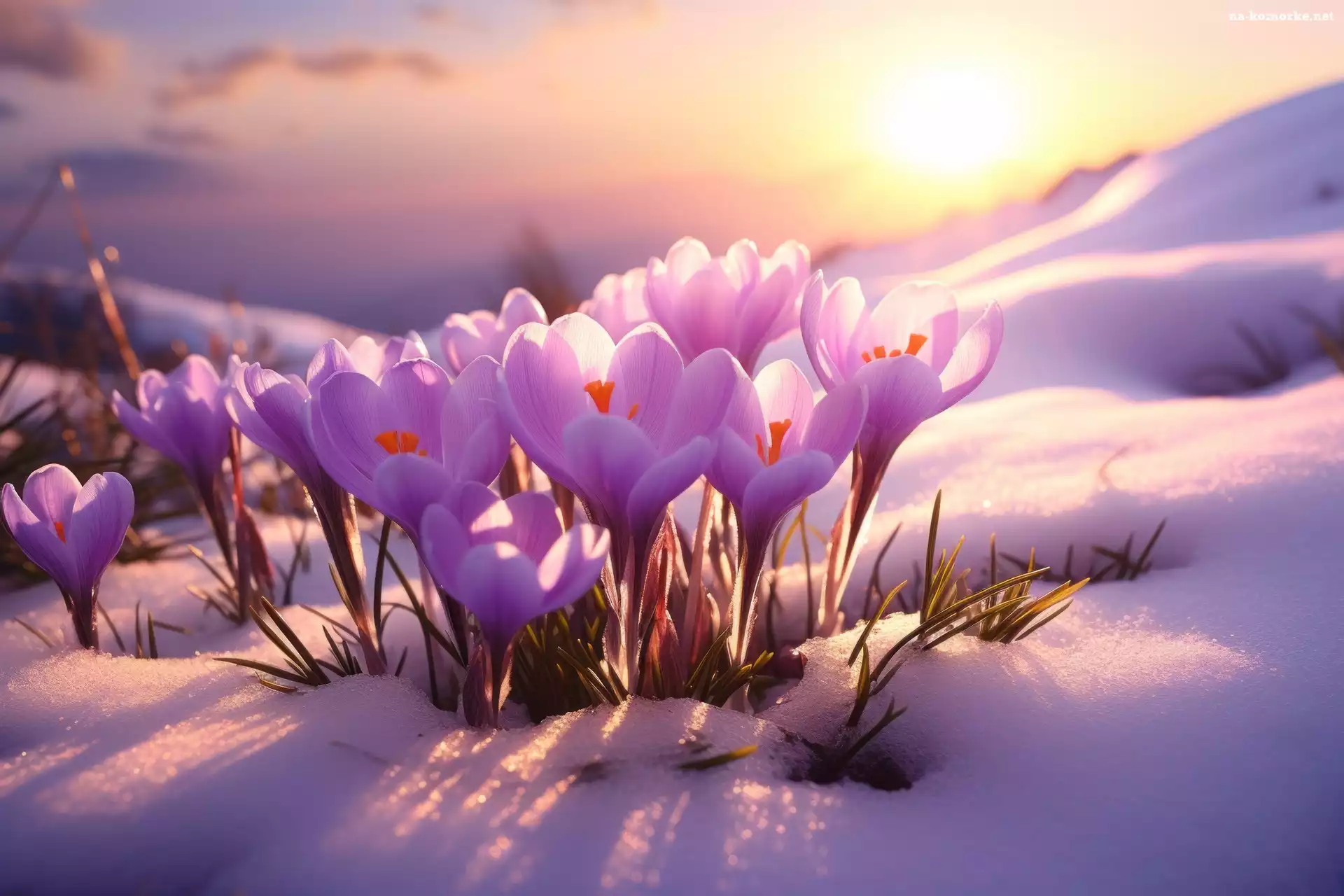 Śnieg, Grafika, Krokusy, Zima na Komórkę