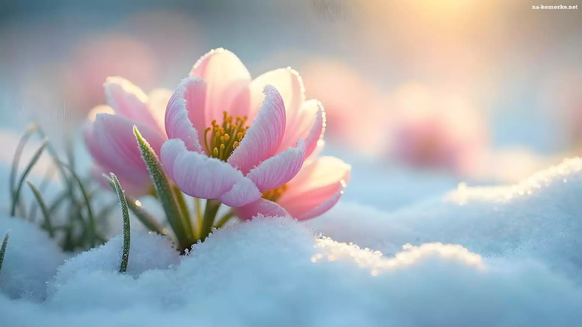 Kwiaty, Zima, Śnieg, Jasnoróżowe, Światło na Komórkę