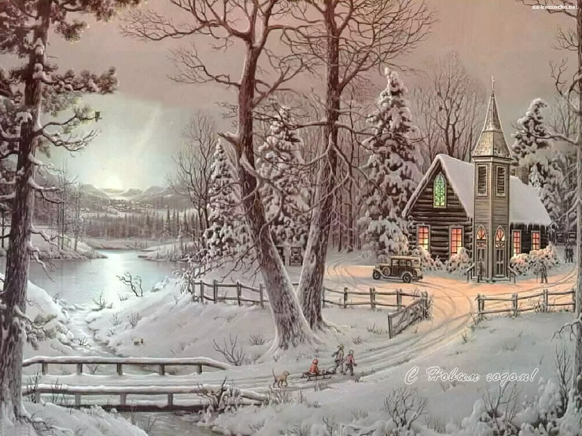 Zima, Malarstwo, Widoczek, Kościół na Komórkę