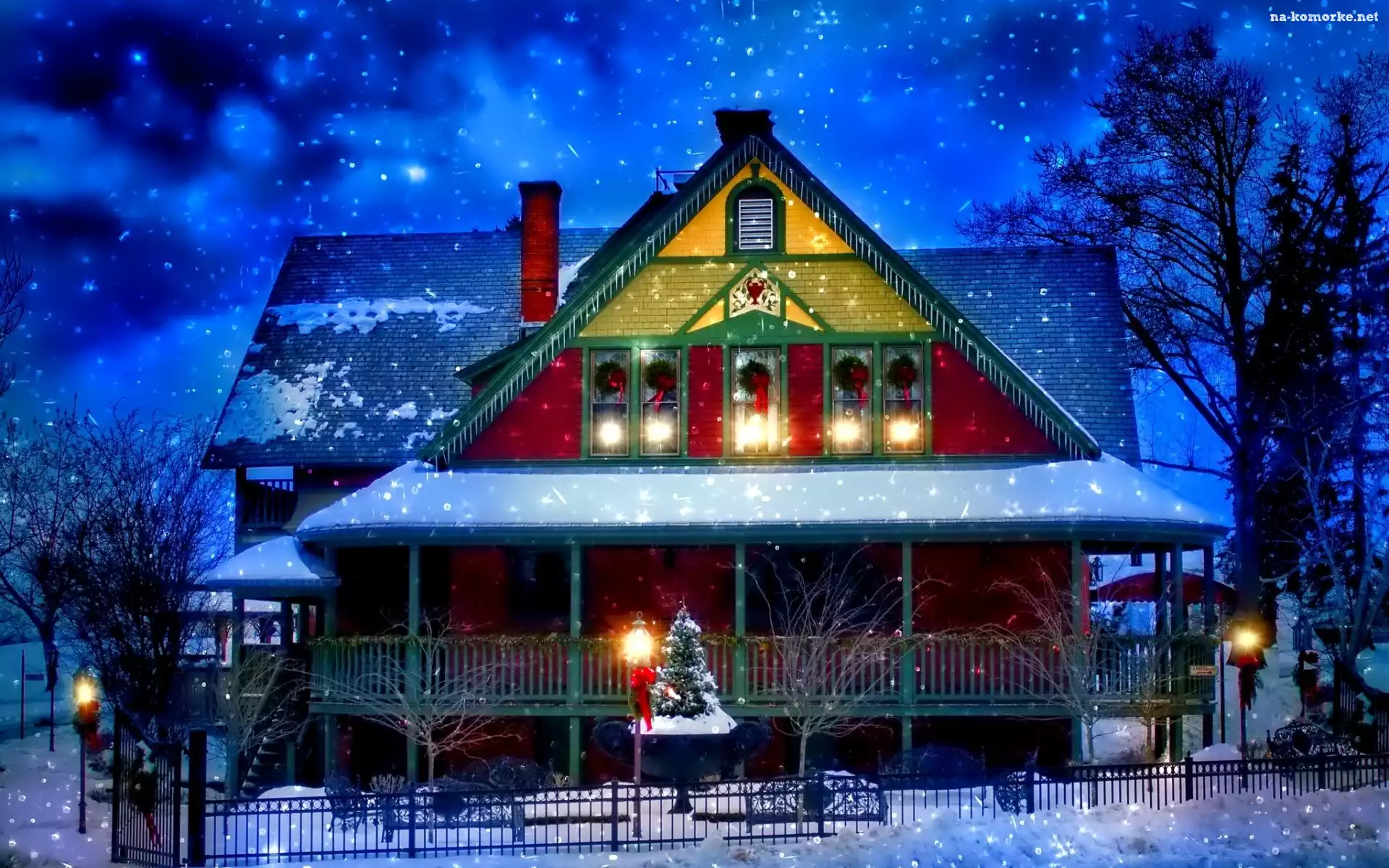 Zima, Dom, Choinka, Wystrój, Świąteczny na Komórkę