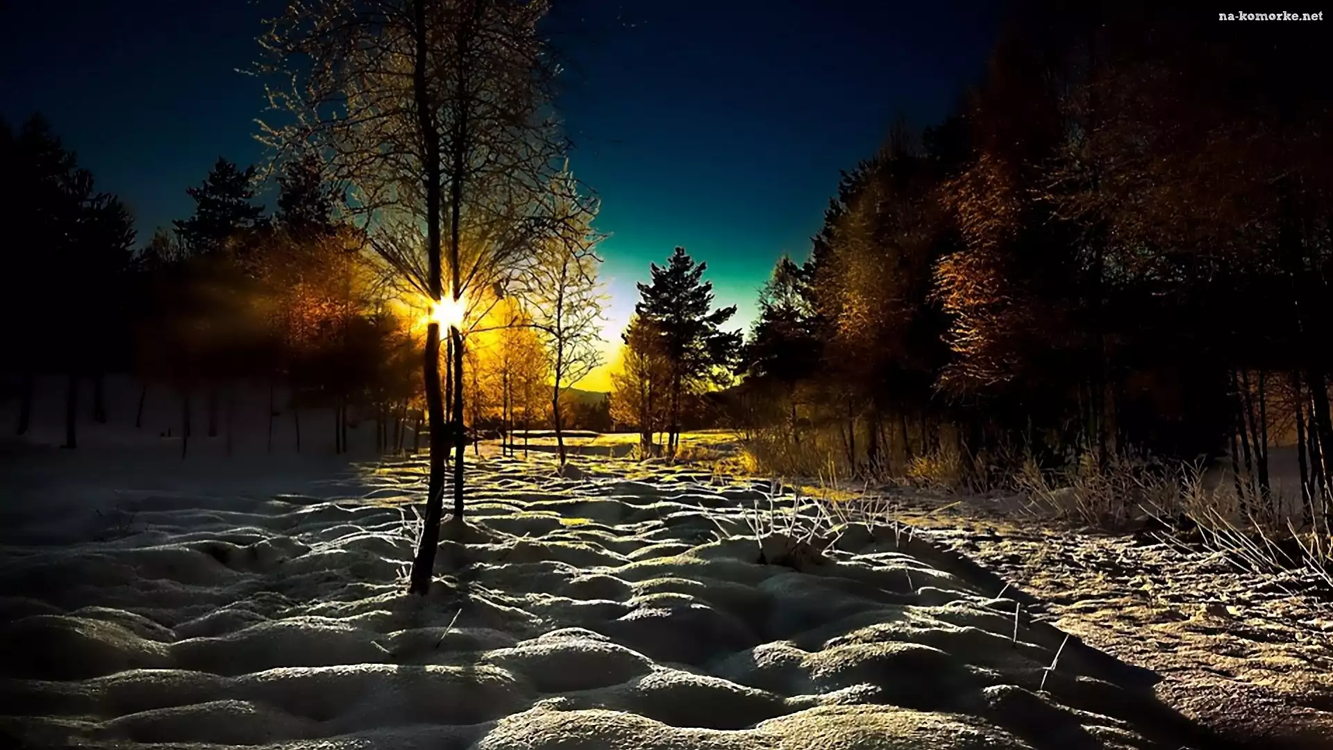 Zima, Park, Drzewa, Zachód, Słońca na Komórkę