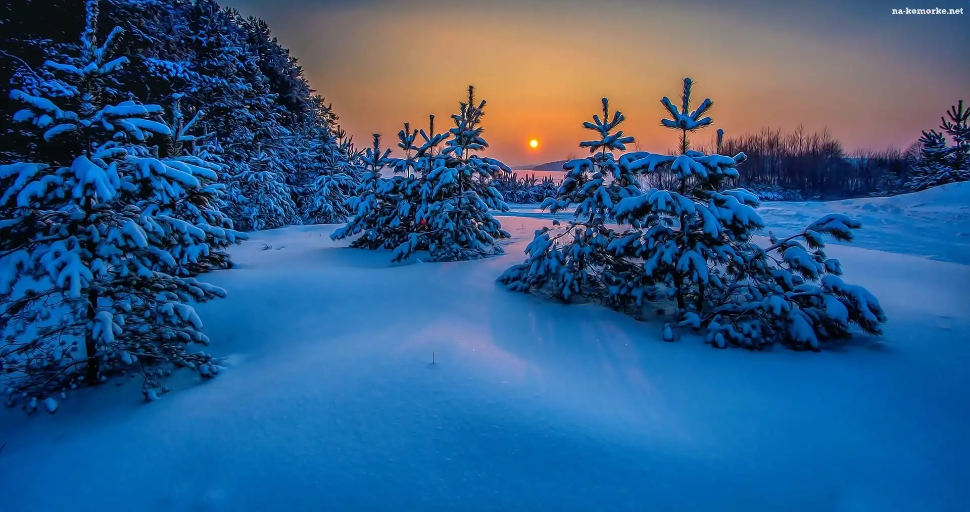 Zima, Las, Góry, Zachód, Słońca na Komórkę