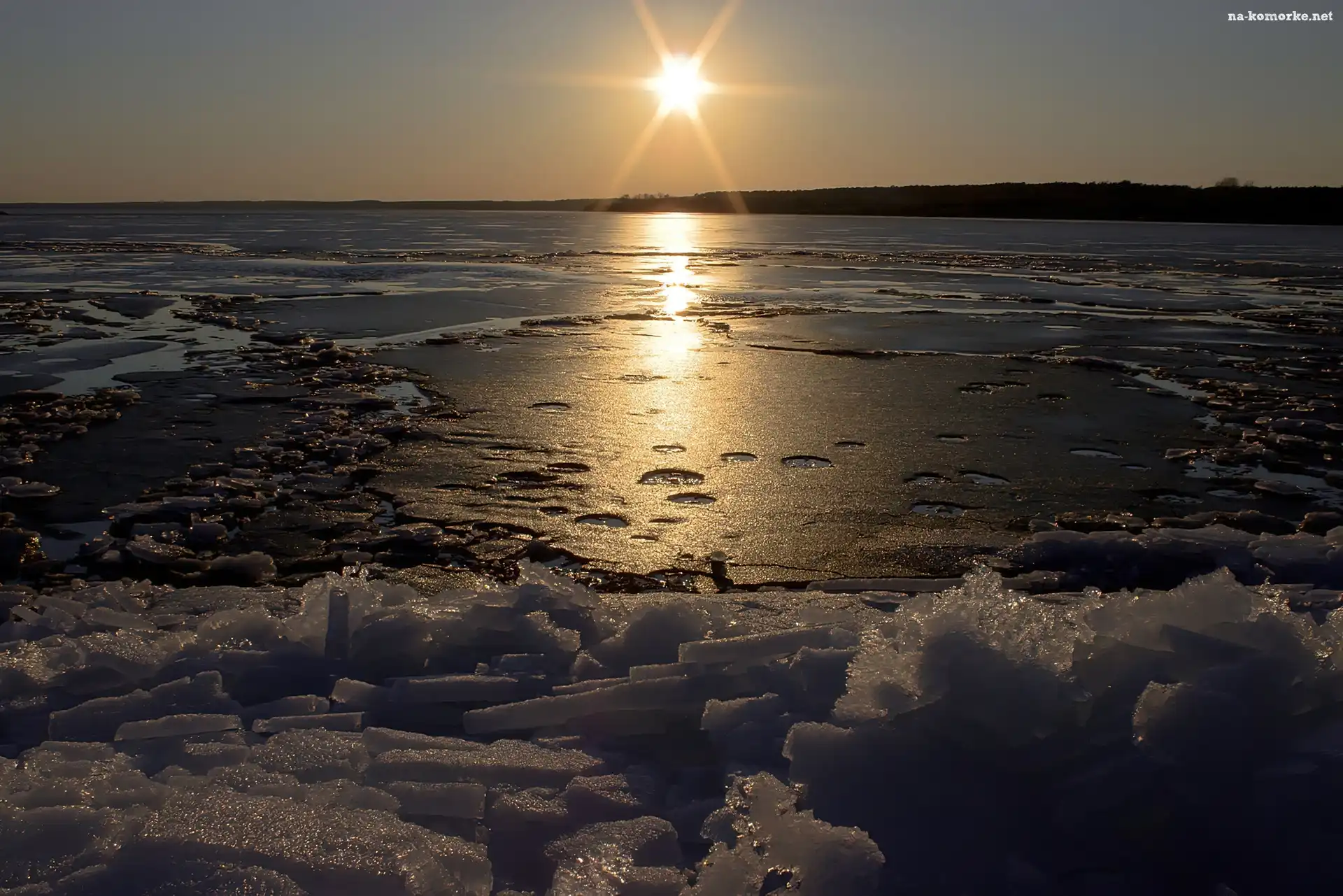 Zima, Jezioro, Zachód, Słońca na Komórkę