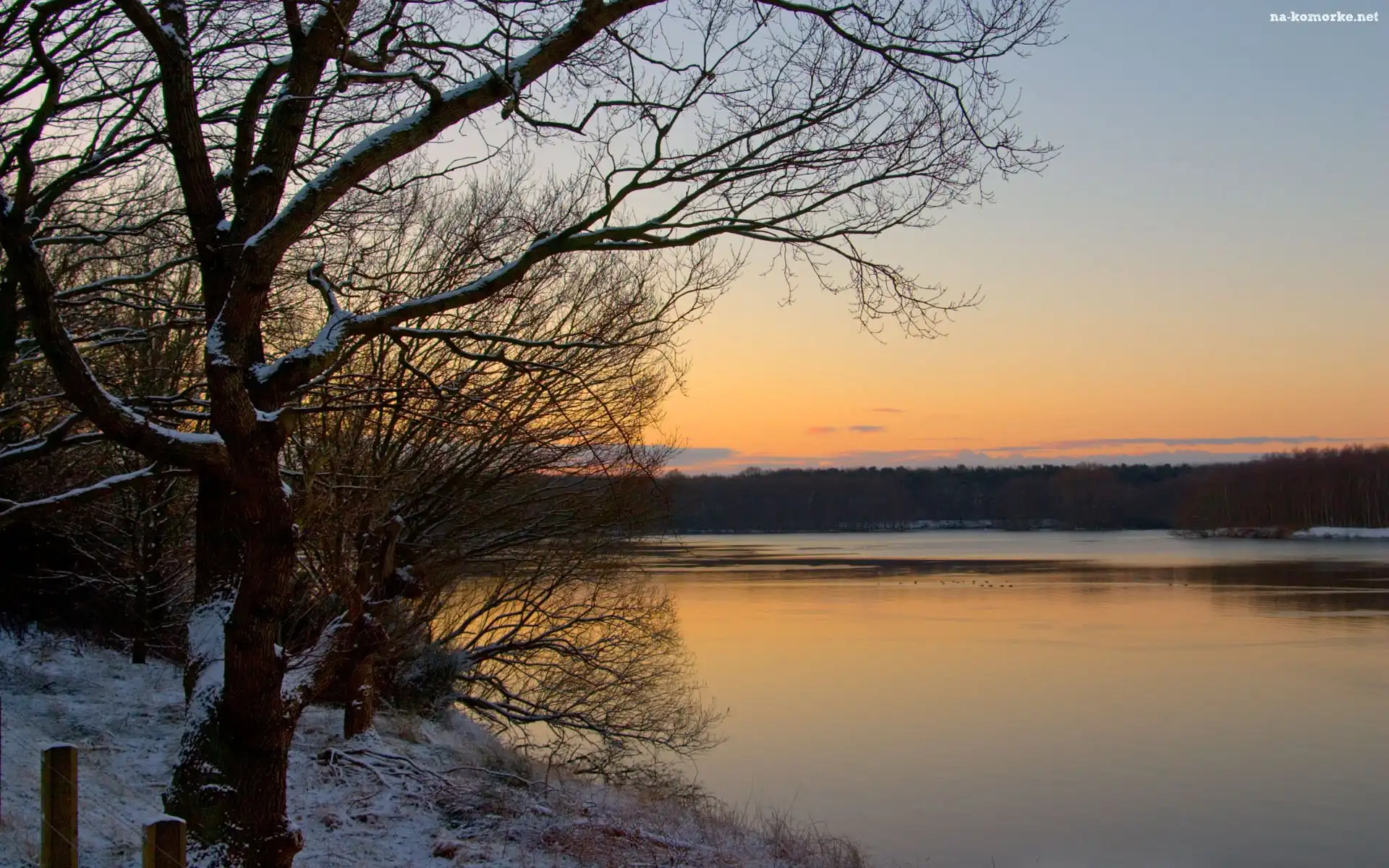 Zima, Rzeka, Lasy, Zachód, Słońca na Komórkę