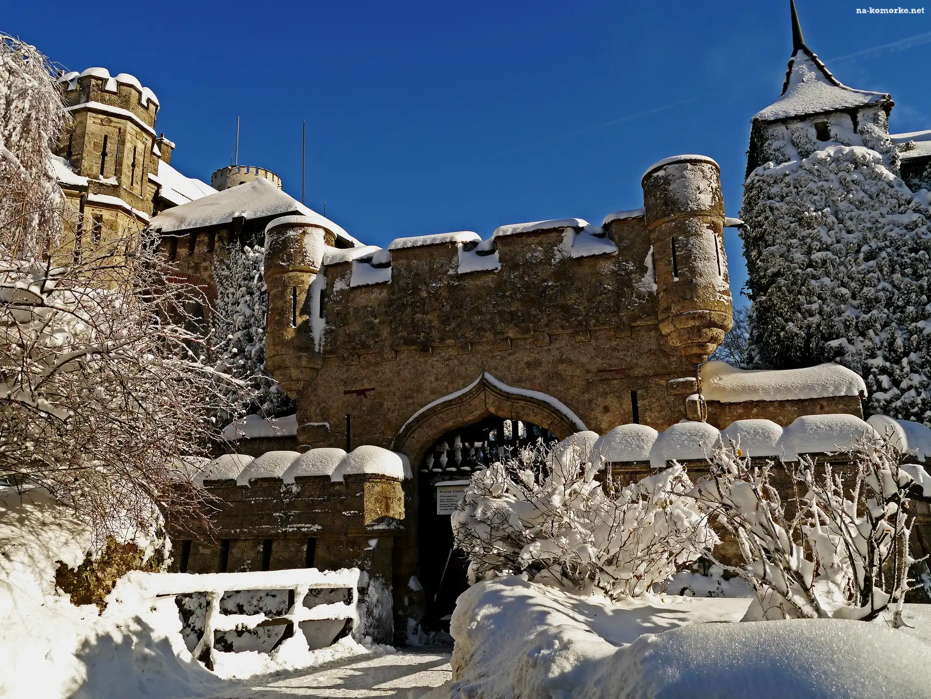 Zamek Lichtenstein Castle, Zima, Badenia-Wirtembergia, Niemcy na Komórkę