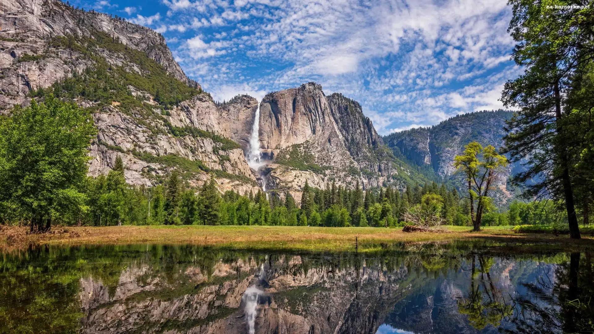 Park Narodowy Yosemite, Wodospad, Skały, Stany Zjednoczone, Rzeka, Drzewa, Góry, Kalifornia na Komórkę |