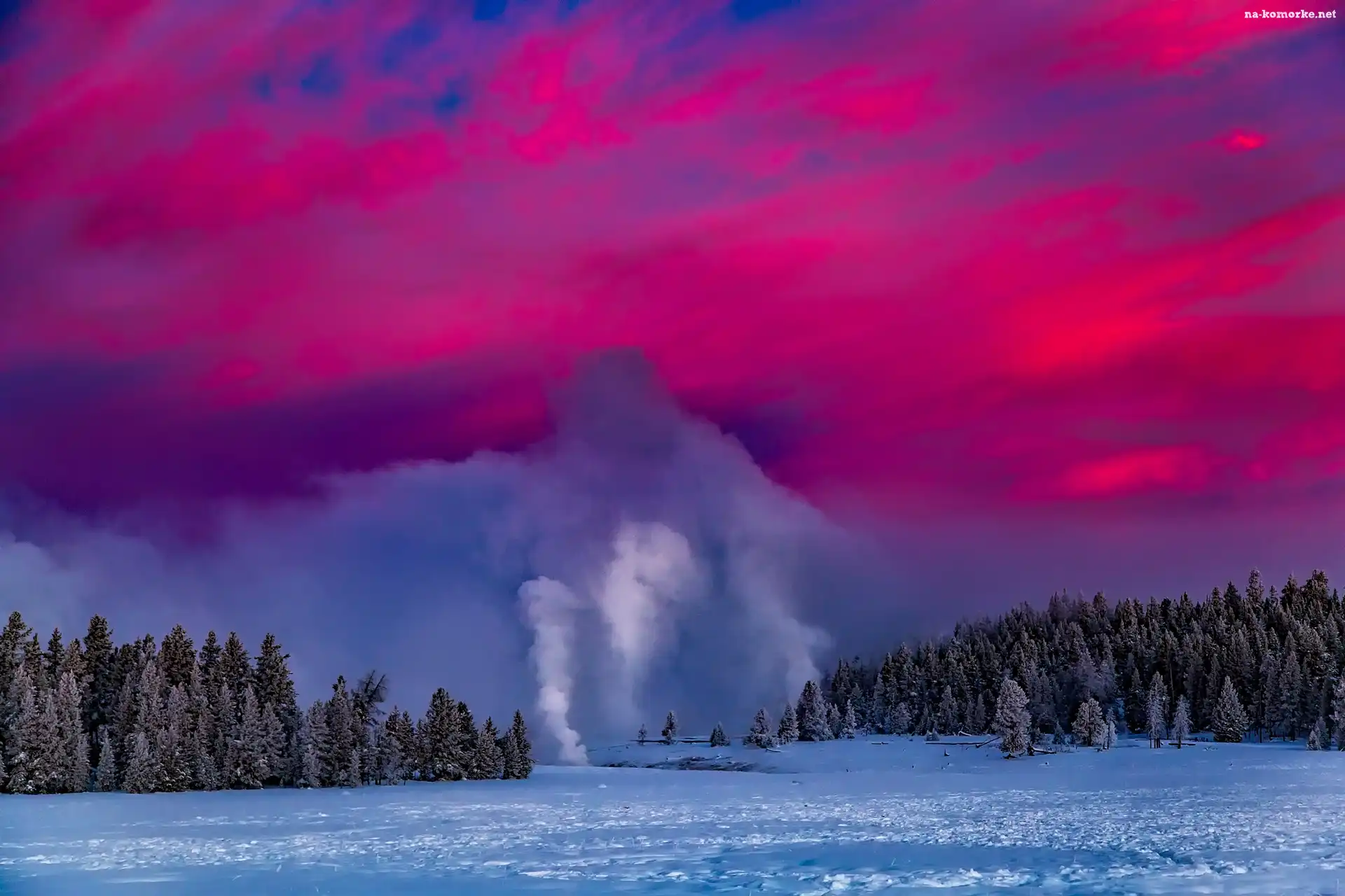 Stany Zjednoczone, Zima, Park Narodowy Yellowstone, Gejzery na Komórkę