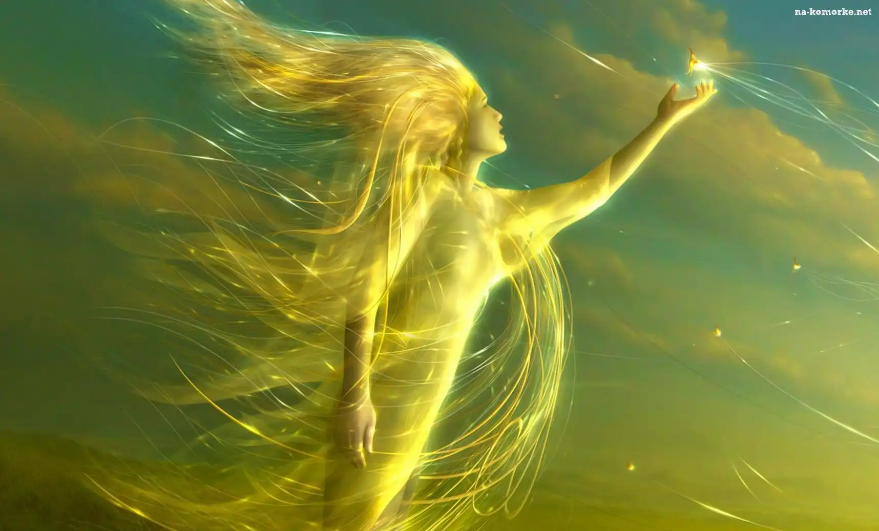 Złota, Niebo, Kobieta, Nici na Komórkę