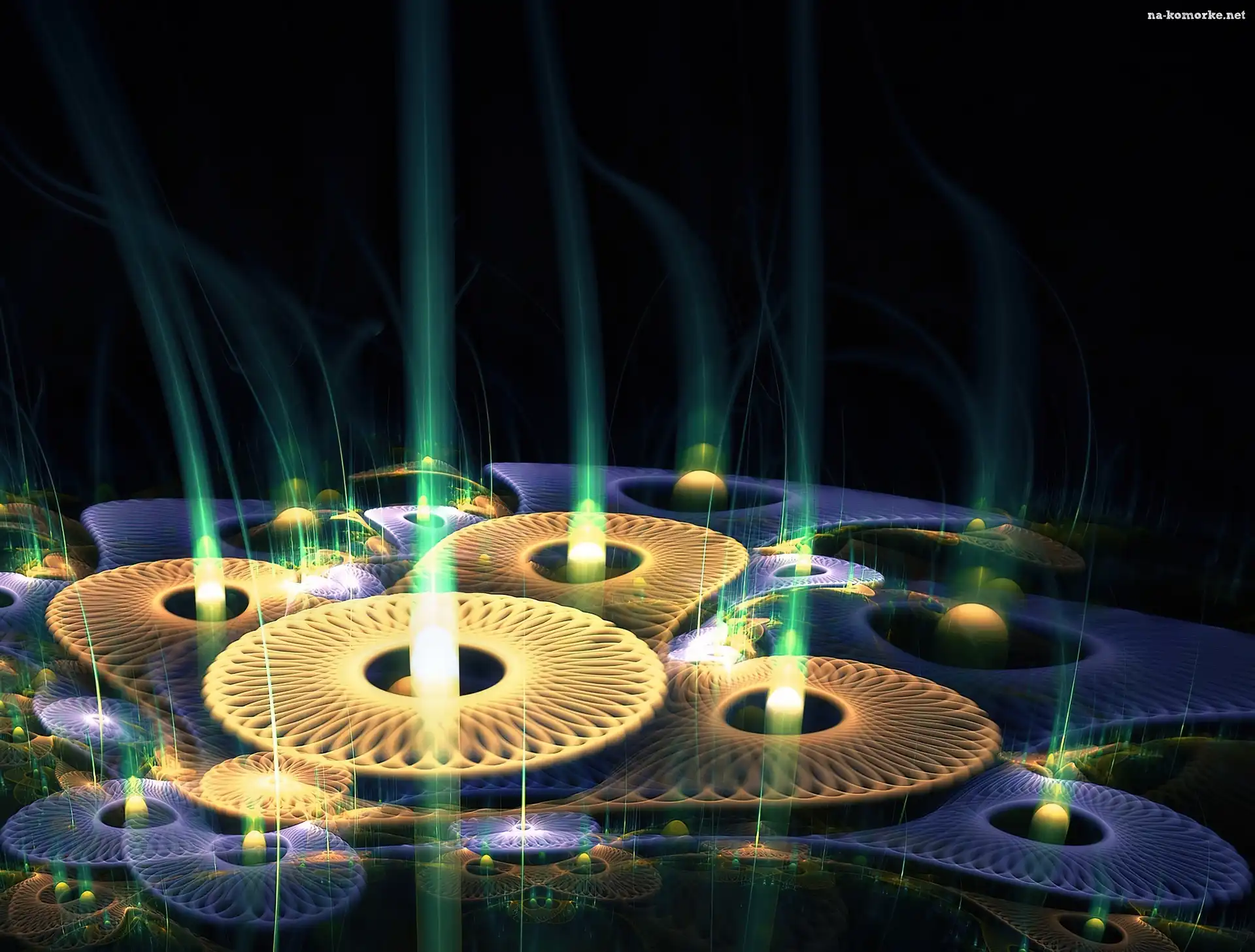 Świetliste, Krążki, Złote, Niebieskie na Komórkę