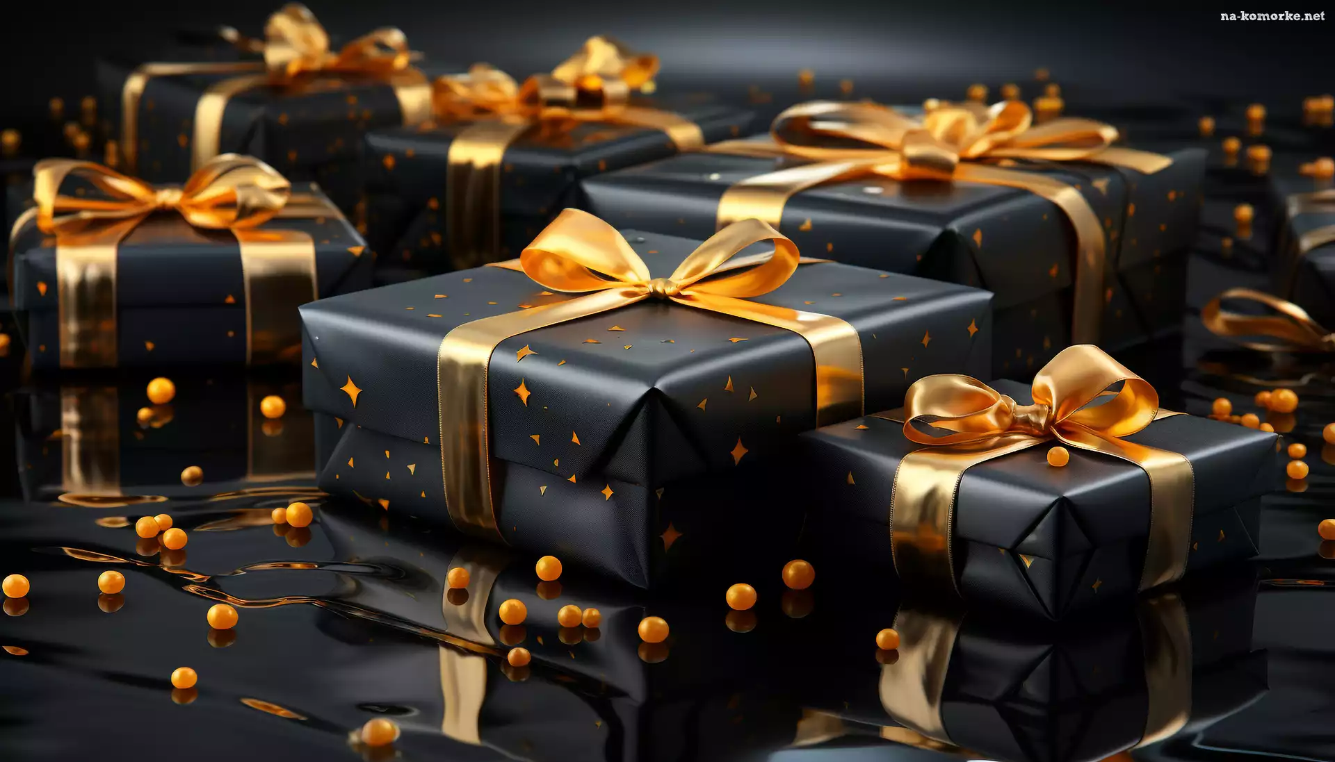 Święta, Złote, Wstążki, Prezenty, Grafika na Komórkę