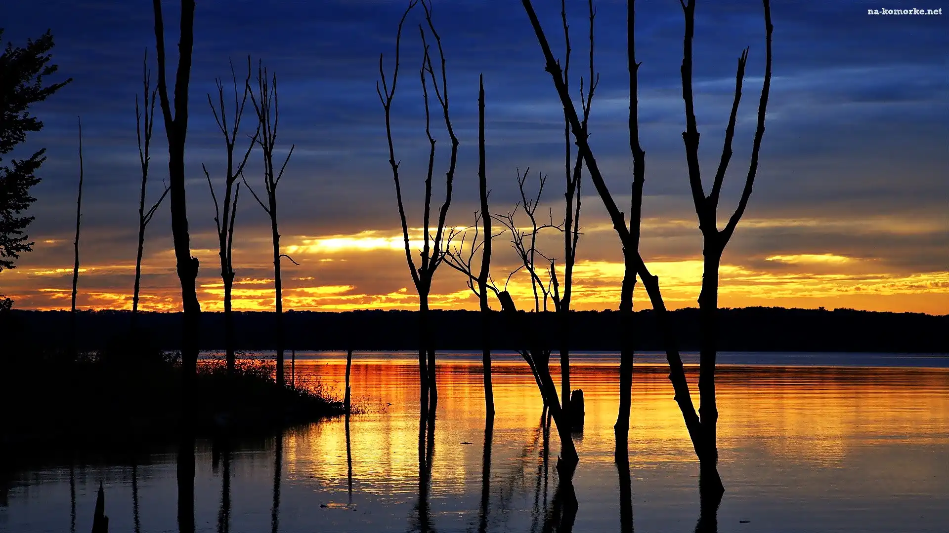 Złoty, Jezioro, Zachód, Słońca na Komórkę