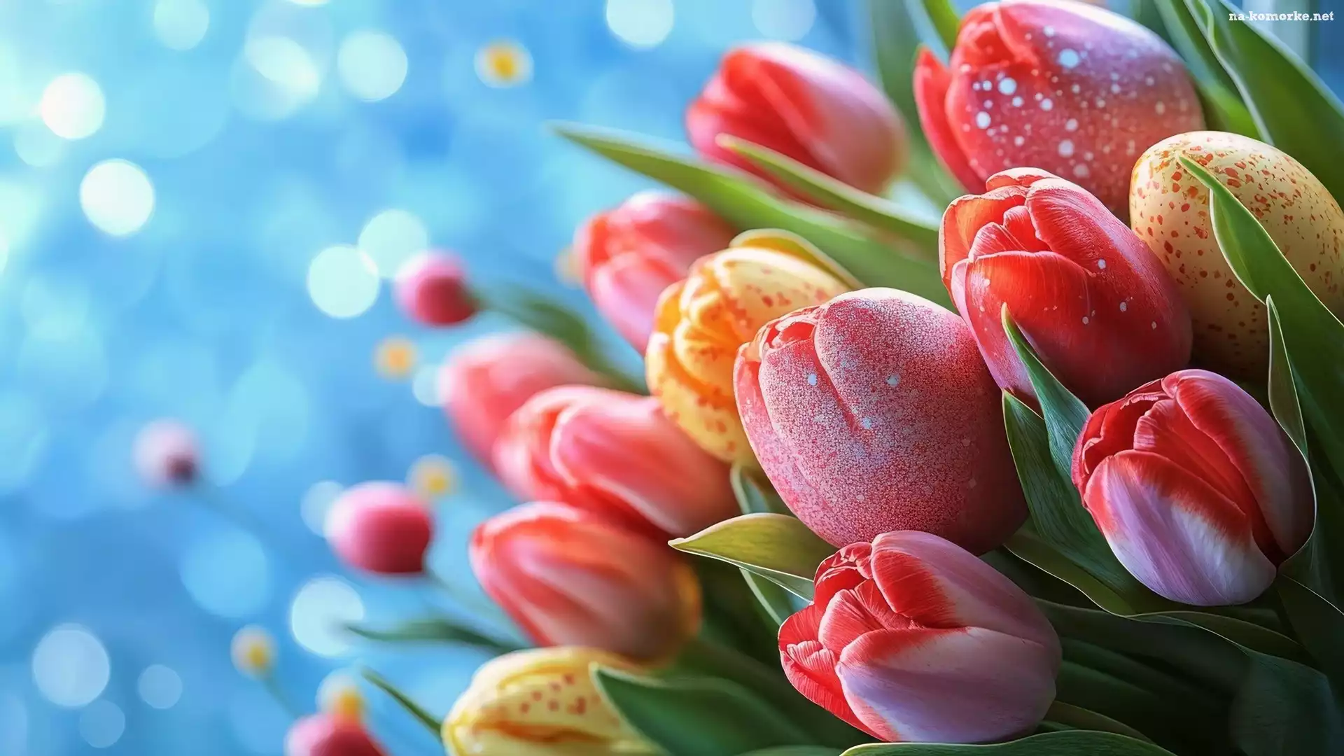 Tulipany, Pisanka, Czerwone, Żółte na Komórkę