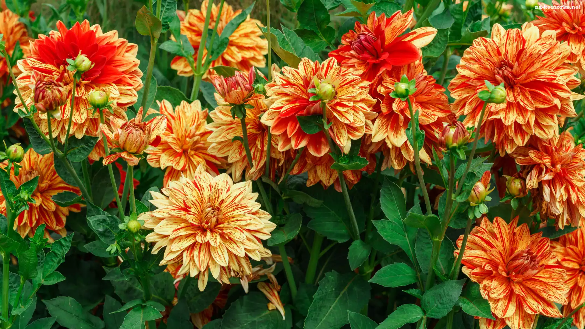 Kwiaty, Dalie, Pąki, Żółto-pomarańczowe, Listki na Komórkę
