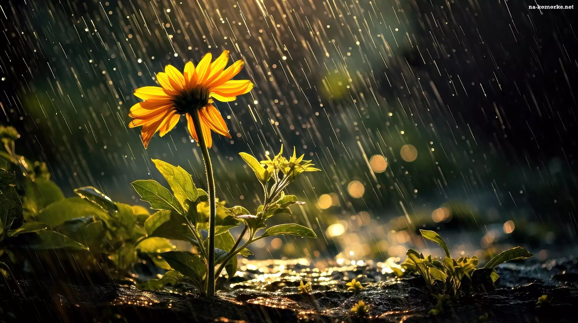 Deszcz, Grafika, Kwiat, Żółty na Komórkę