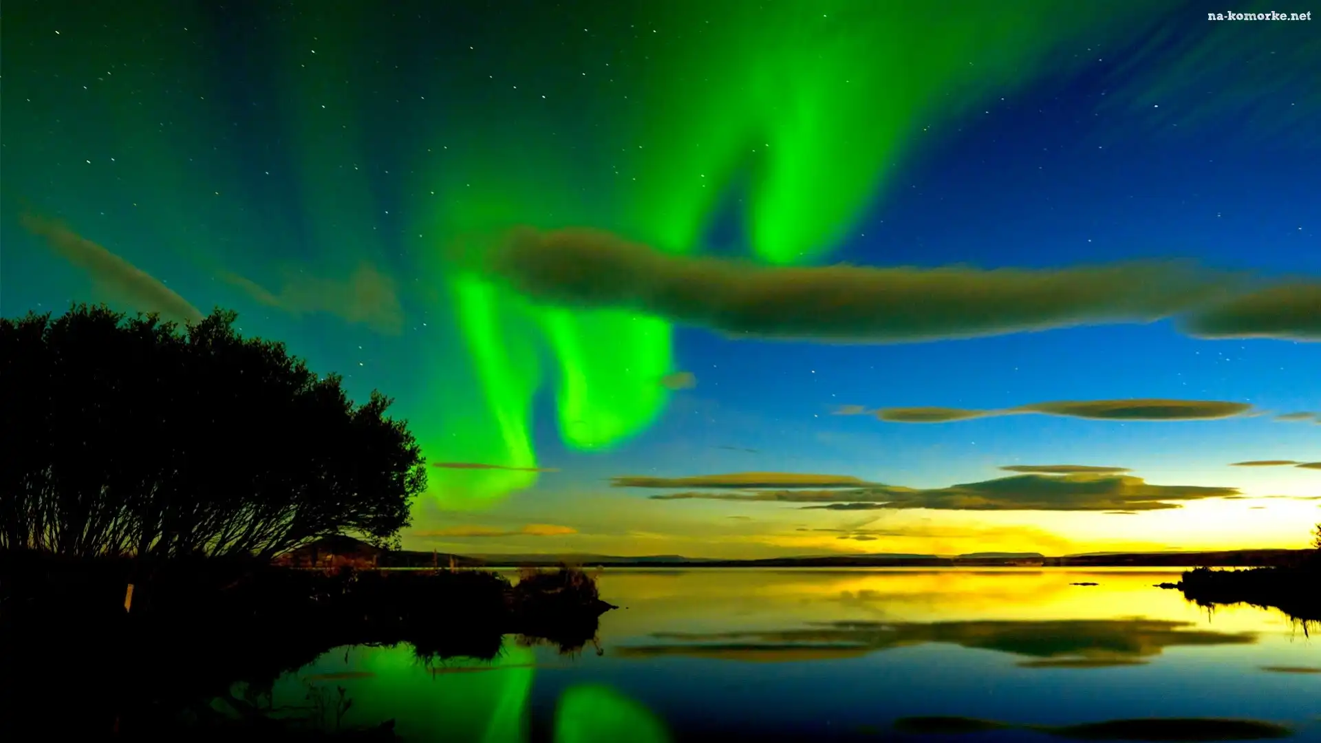 Zorza, Niebo, Polarna, Jezioro na Komórkę