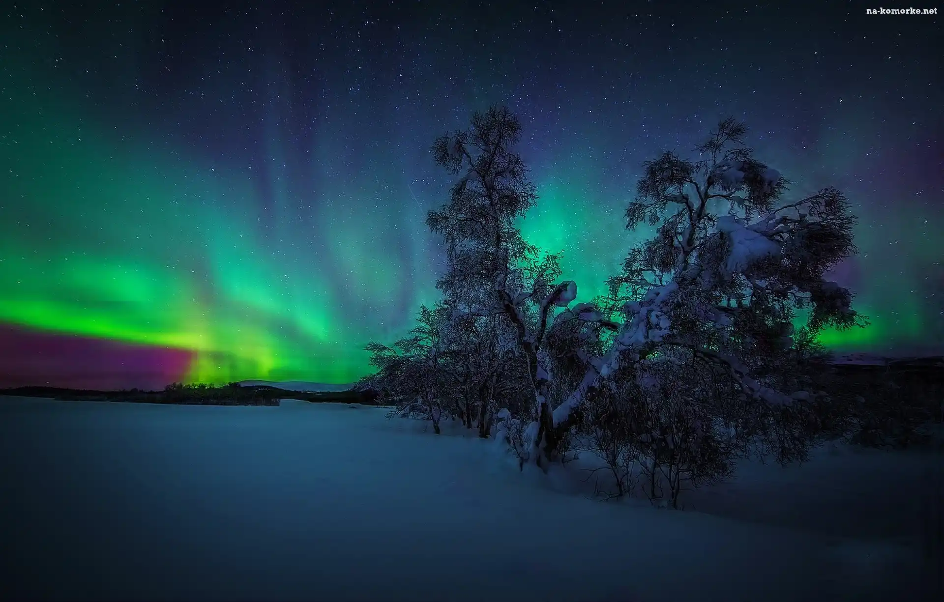 Zorza, Zima, Polarna, Drzewa na Komórkę