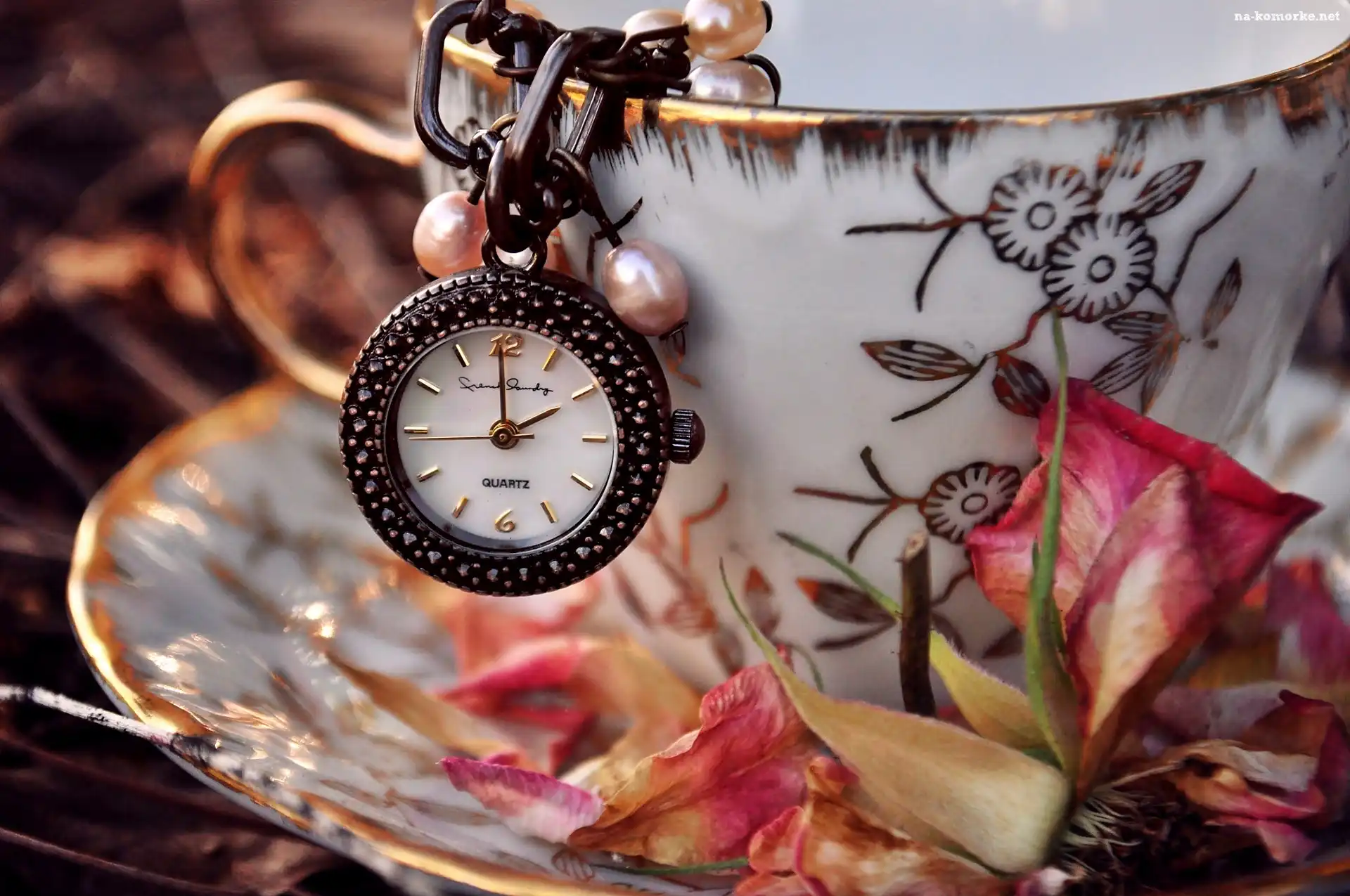 Zwiędła, Retro, Zegarek, Rozmycie, Porcelana, Róża na Komórkę