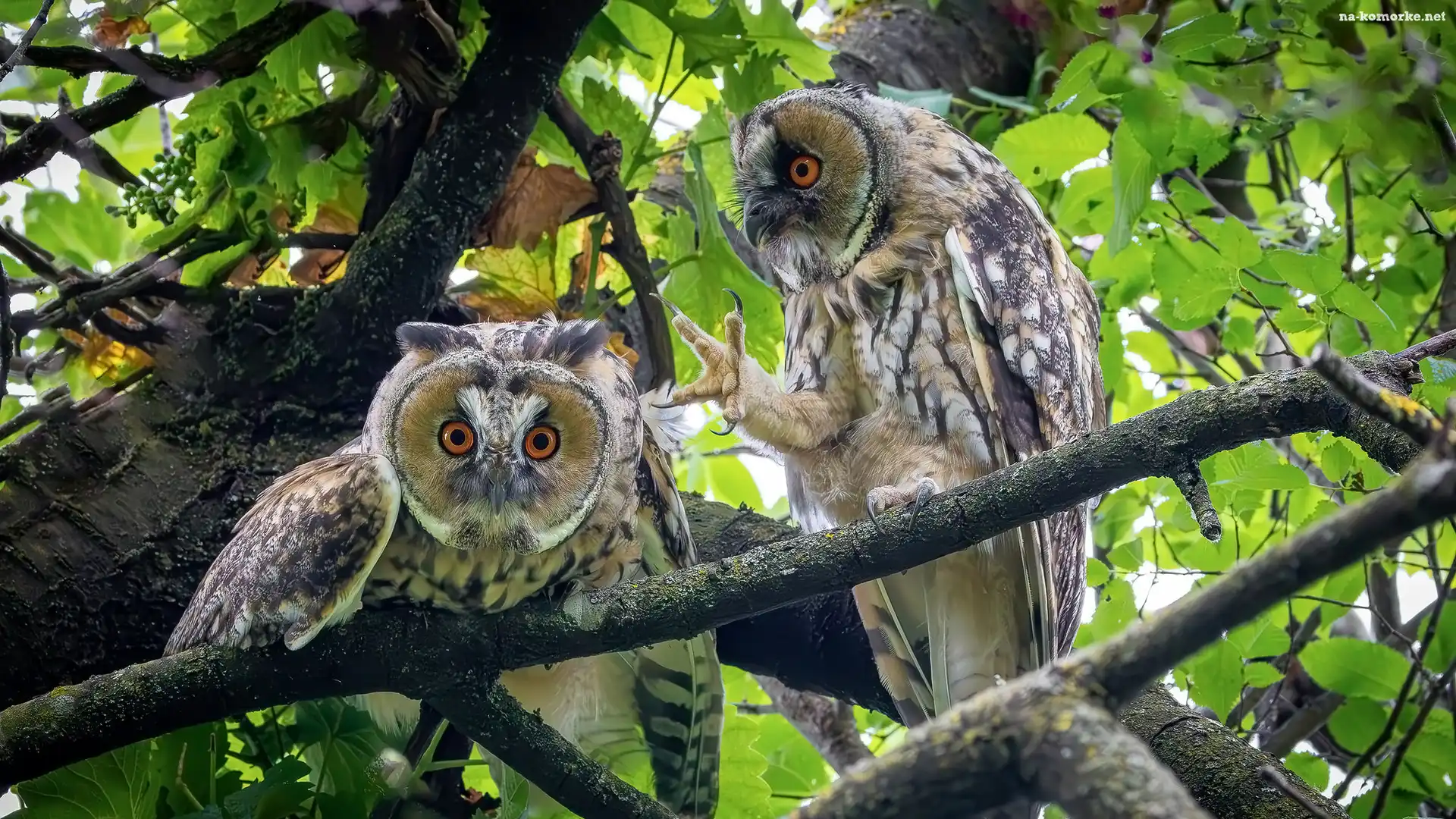 Sowy, Drzewo, Uszatki zwyczajne na Komórkę
